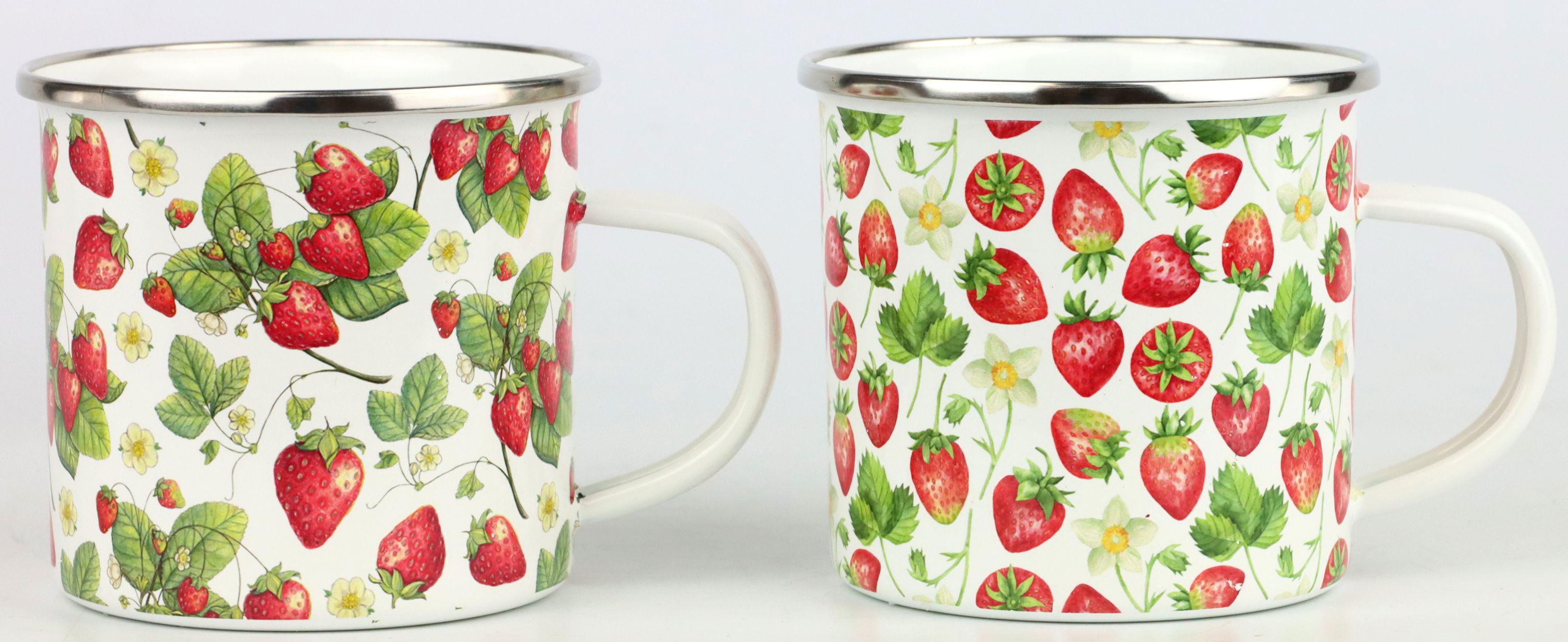 DEEntdecken Sie unser exquisites Henkeltassen-Set "STRAWBERRY", das perfekt für die Frühlings- und Sommermonate konzipiert wurde. Dieses wunderschöne 2-teilige Set bringt mit seinem charmanten Erdbeermotiv frischen Wind in jede Kücheneinrichtung. Gefertigt aus robustem und langlebigem emailliertem Eisen, verspricht dieses Set nicht nur optische Faszination, sondern auch ausgesprochen hohe Funktionalität.