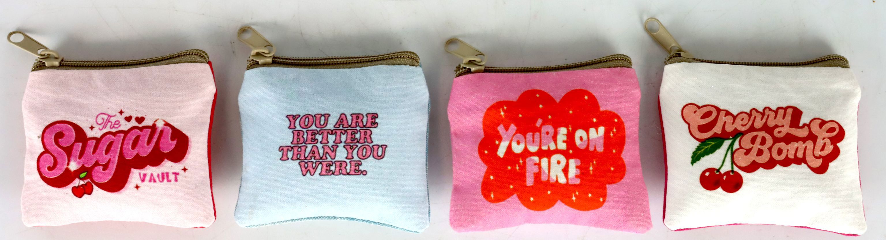 Jedes Täschchen innerhalb dieses Sets ist so dimensioniert, dass es sich perfekt für vielfache Einsatzmöglichkeiten eignet. Sie sind leicht in Handtaschen zu verstauen oder als dekoratives Element im Einzelhandel wirkungsvoll zu präsentieren. Die frischen Farben und positiven Botschaften machen sie zum idealen Begleiter für die fröhlichen Monate des Jahres.