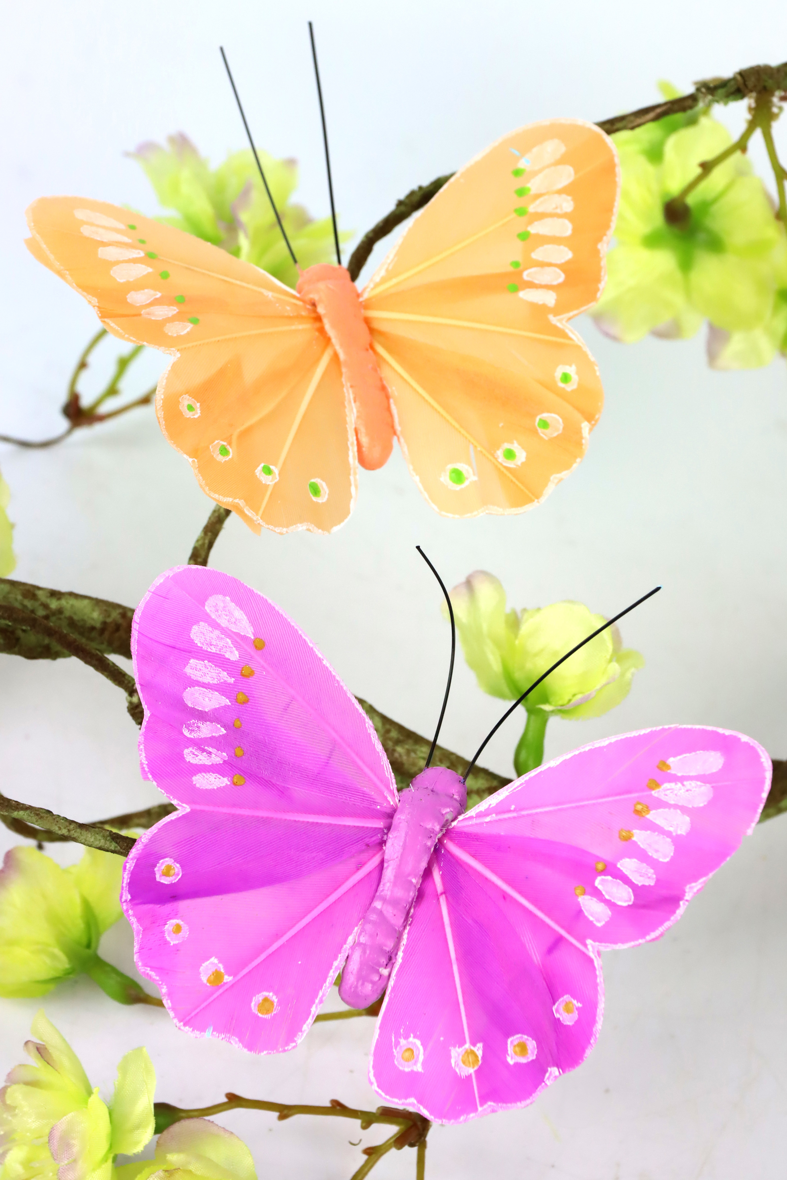 Mit einer Länge von etwa 10 cm bestechen die Schmetterlingsklammern durch eine präzise Verarbeitung, die sowohl eine hohe Stabilität als auch eine edle Optik gewährleistet. Die Kombination aus strapazierfähigem Polyester und robustem Metall macht sie zu langlebigen Dekoelementen, die Ihren Kunden über viele Saisons hinweg Freude bereiten. Dank des durchdachten Designs lassen sich die Schmetterlingsklammern mühelos befestigen und geben dabei jedem Raum eine frische, natürliche Ausstrahlung.