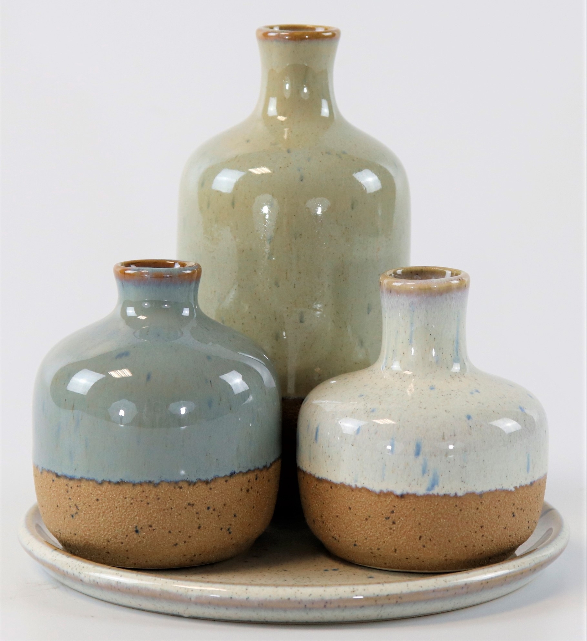 Besonders hervorzuheben ist der zum Set gehörende Teller mit einem Durchmesser von 15 cm, der die Vasen perfekt in Szene setzt. Das Ensemble bietet nicht nur zahlreiche Gestaltungsoptionen, sondern auch die Möglichkeit, kreativ Blumen oder Pflanzen zu präsentieren, die den Frühling ins Haus holen. Dank ihrer zeitlosen Farbgebung passen die Vasen zu nahezu jedem Einrichtungsstil und lassen sich wunderbar mit anderen Dekorationselementen kombinieren.