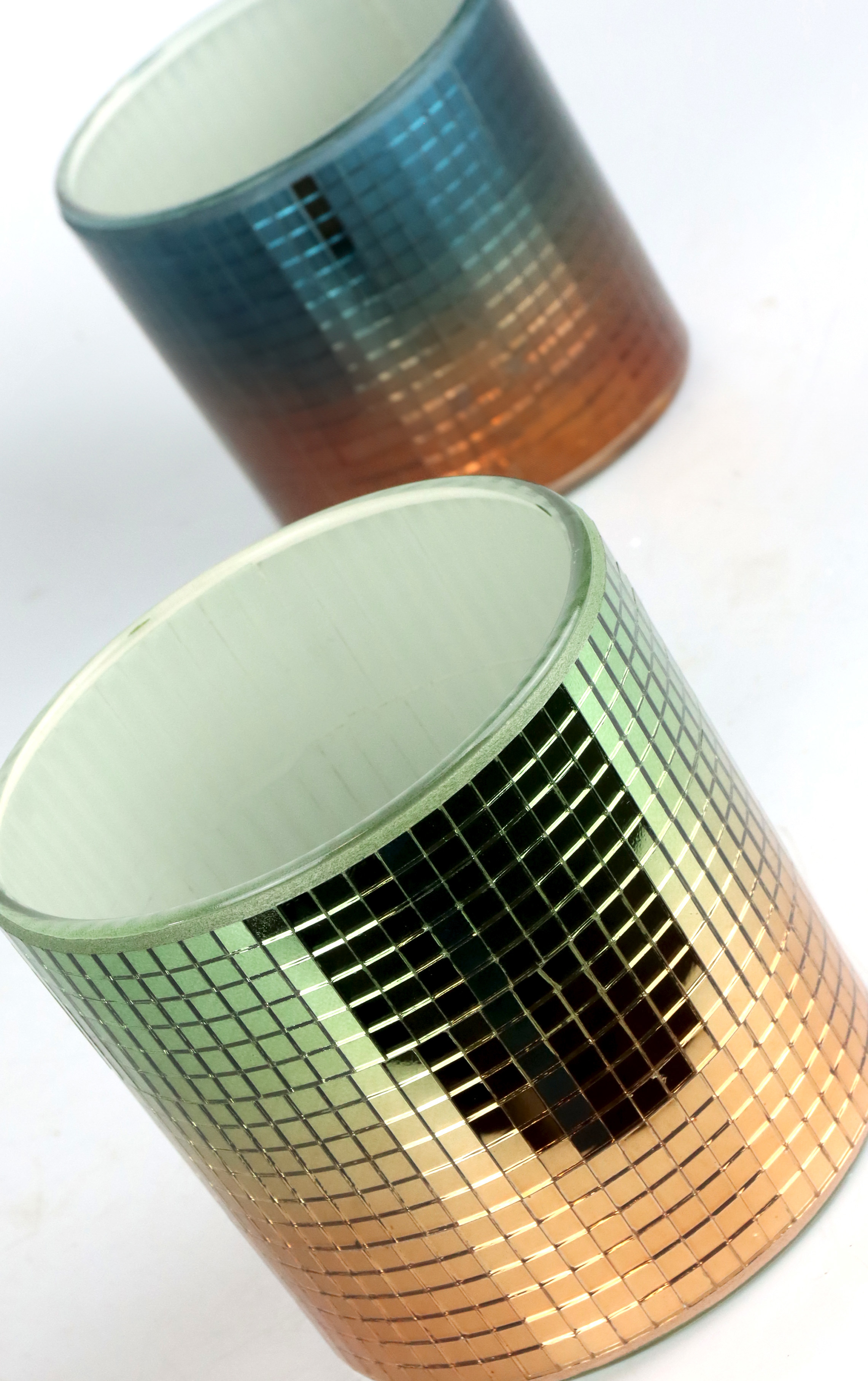 Die "Mosaic Majesty" Windlichter überzeugen durch ihr meisterhaftes Mosaikdesign in den edlen Farbkombinationen von Goldgrün und Goldblau. Diese harmonischen Farben fangen das Licht auf wundervolle Weise ein und schaffen eine warme, einladende Atmosphäre, die perfekt zur kalten Jahreszeit passt. Jedes Windlicht ist ein Unikat, das handwerkliches Können in seiner schönsten Form repräsentiert.