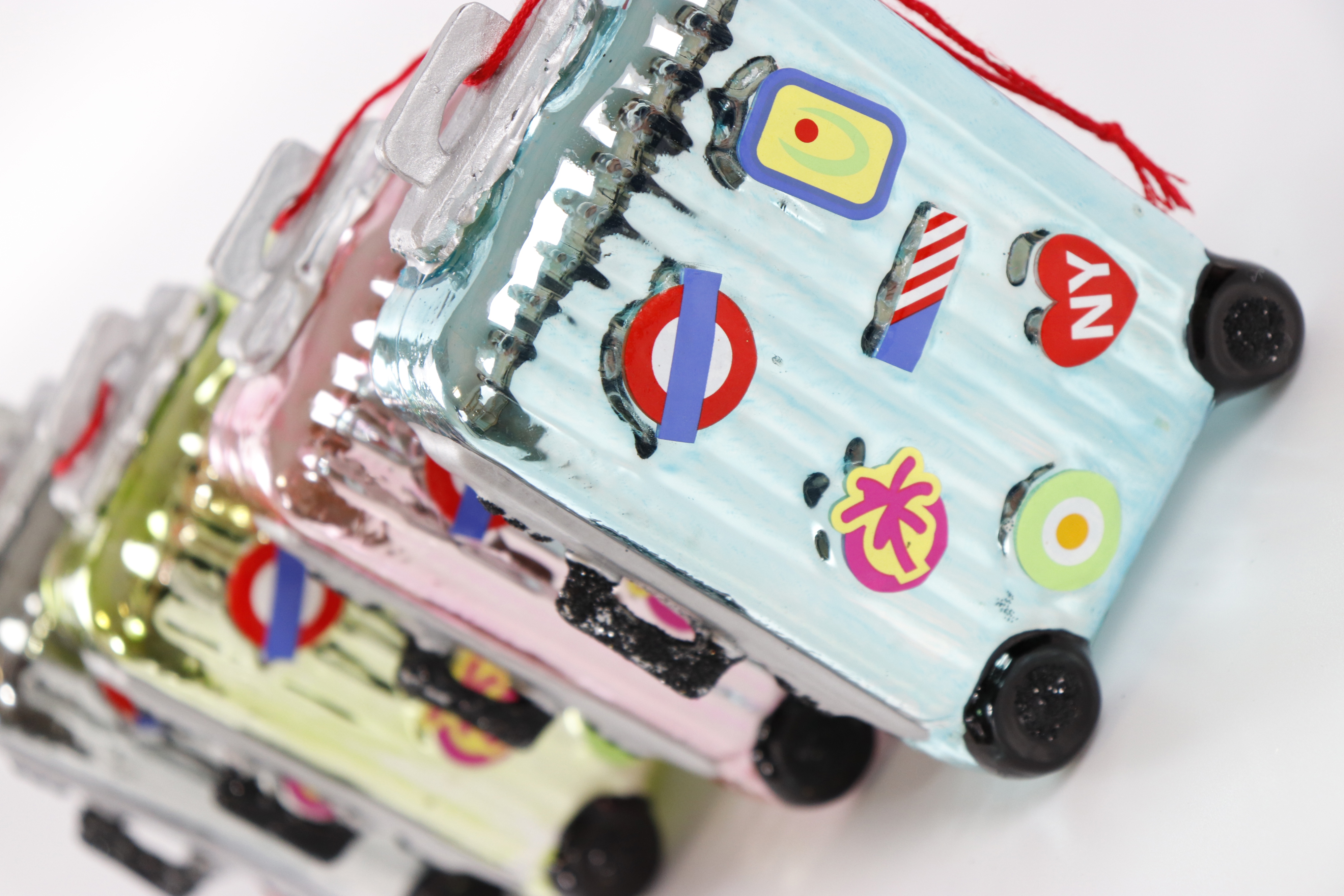 Verleihen Sie Ihrem Weihnachtsbaum einen einzigartigen und stimmungsvollen Akzent mit unserem stilvollen Glasschmuck "Traveller" Set. Mit der Artikelnummer 3184 bieten wir in unserem Onlineshop eine exquisite Sammlung von vier kunstvoll gefertigten Koffer-Anhängern aus Glas an, die sich perfekt in jedes festliche Wohn- und Lifestyleambiente einfinden lassen.