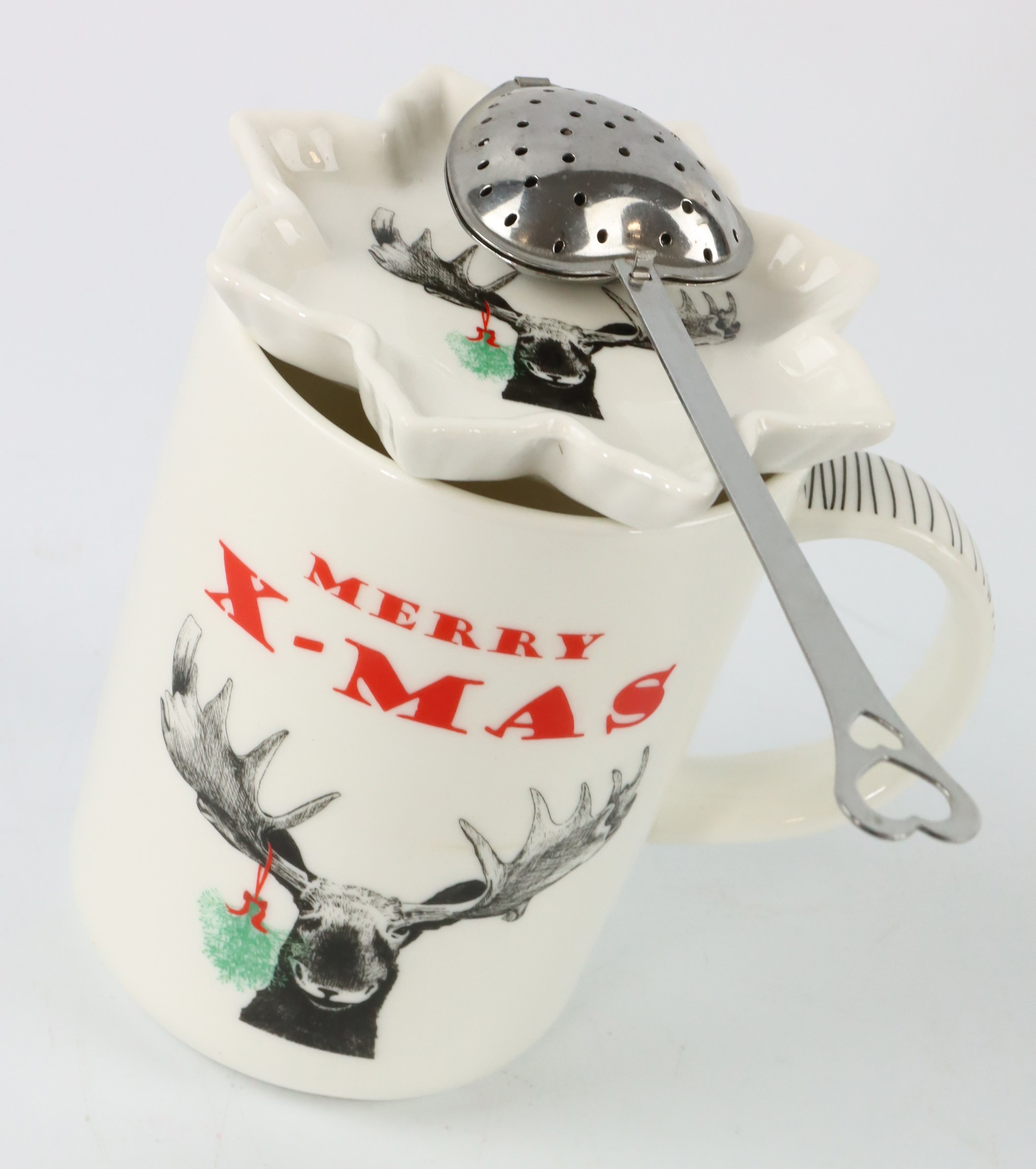 Das Geschenkeset "Funny Moose" besteht aus einer charmanten Tasse, einem dekorativen Sternenteller und einem einzigartigen Teesieb aus hochwertigem Porzellan. Diese liebevoll gestalteten und aufeinander abgestimmten Komponenten zeichnen sich durch ihr lustiges Elch-Design aus, das sich harmonisch in jede weihnachtliche Dekoration einfügt. Die Tasse und der Sternenteller sind ideal für gemütliche Frühstücksmomente oder den nachmittäglichen Tee, während das praktische Teesieb das Teeerlebnis stilvoll ergänzt. Mit einer Höhe von ca. 11,5 cm sind alle Teile in einer ansprechenden Geschenkbox verpackt, die das Set zu einer perfekten Schenkoption machen.