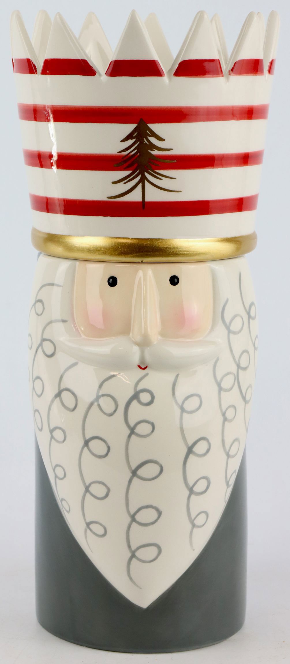 Die KERAMIKDOSE "HOLY KING" ist ein raffinierter und zugleich funktioneller Artikel, der jeden Raum in ein gemütliches Weihnachtsparadies verwandelt. Mit einer Höhe von circa 29 cm ist sie ein beeindruckendes Statement-Stück. Die Dose bildet eine perfekte Verbindung von Nutzbarkeit und glamourösem Design und bietet genug Platz um süße Gaumenfreuden, kleine Schätze oder Kerzen aufzubewahren.