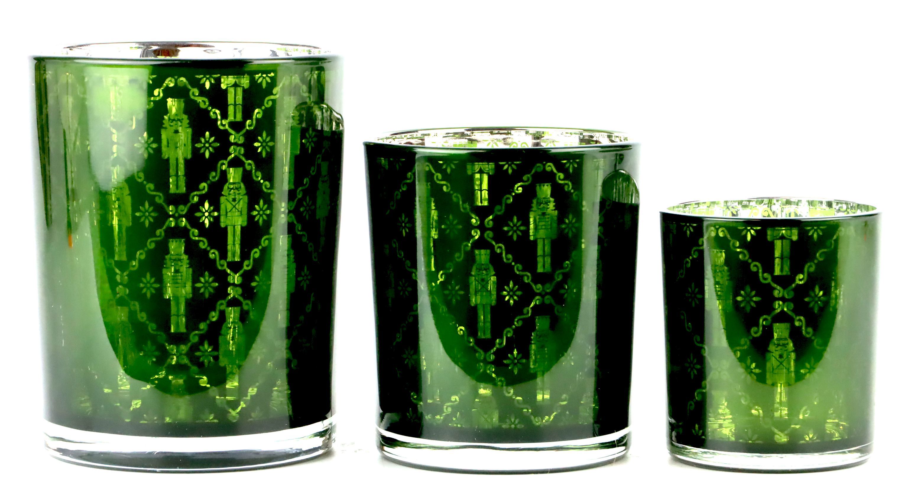 Verleihen Sie Ihrem stationären Einzelhandelsgeschäft in der Weihnachtszeit eine zauberhafte Atmosphäre mit unserem exklusiven Windlichterset "Nussknacker". Dieses 3-teilige Set, bestehend aus Windlichtern in drei unterschiedlichen Größen, ist ein wahrer Blickfang für jeden Wohn- und Lifestyle-Shop, der seinen Kunden eine einzigartige und festliche Dekoration bieten möchte. Die eleganten Windlichter sind mit einem stilvollen Nussknacker-Motiv verziert und in einem ansprechenden Grünton gehalten, der perfekt in die weihnachtliche Farbpalette passt.