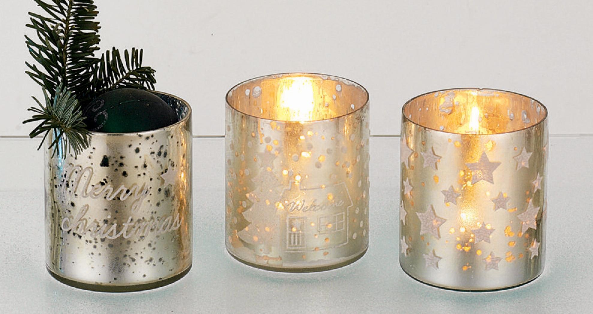 - 3-teiliges Windlichter Set mit "Merry Christmas" Beschriftung