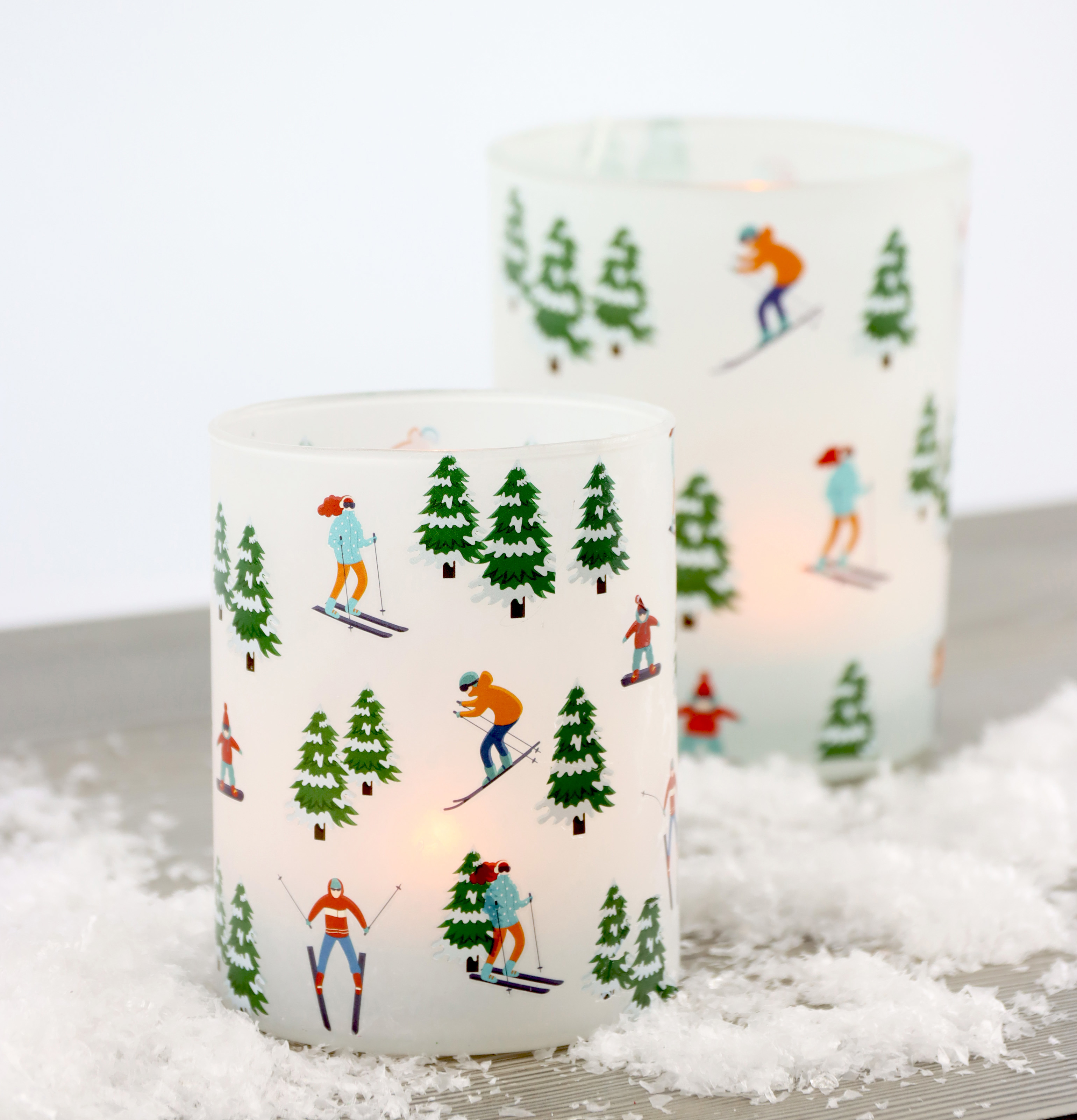Die Skifahrer-Motive vermitteln ein Gefühl von Abenteuer und Freiheit, das perfekt zur kalten Jahreszeit passt. Ob für festliche Anlässe oder als stimmungsvolle Dekoration im Ladengeschäft – mit unseren Windlichtern "Snowy Escapades" schaffen Sie stets eine einladende und warme Atmosphäre. Platzieren Sie sie auf Regalen, Tischen oder Fensterbänken und verzaubern Sie Ihre Kunden mit dem winterlichen Charme dieser einzigartigen Wohnaccessoires.