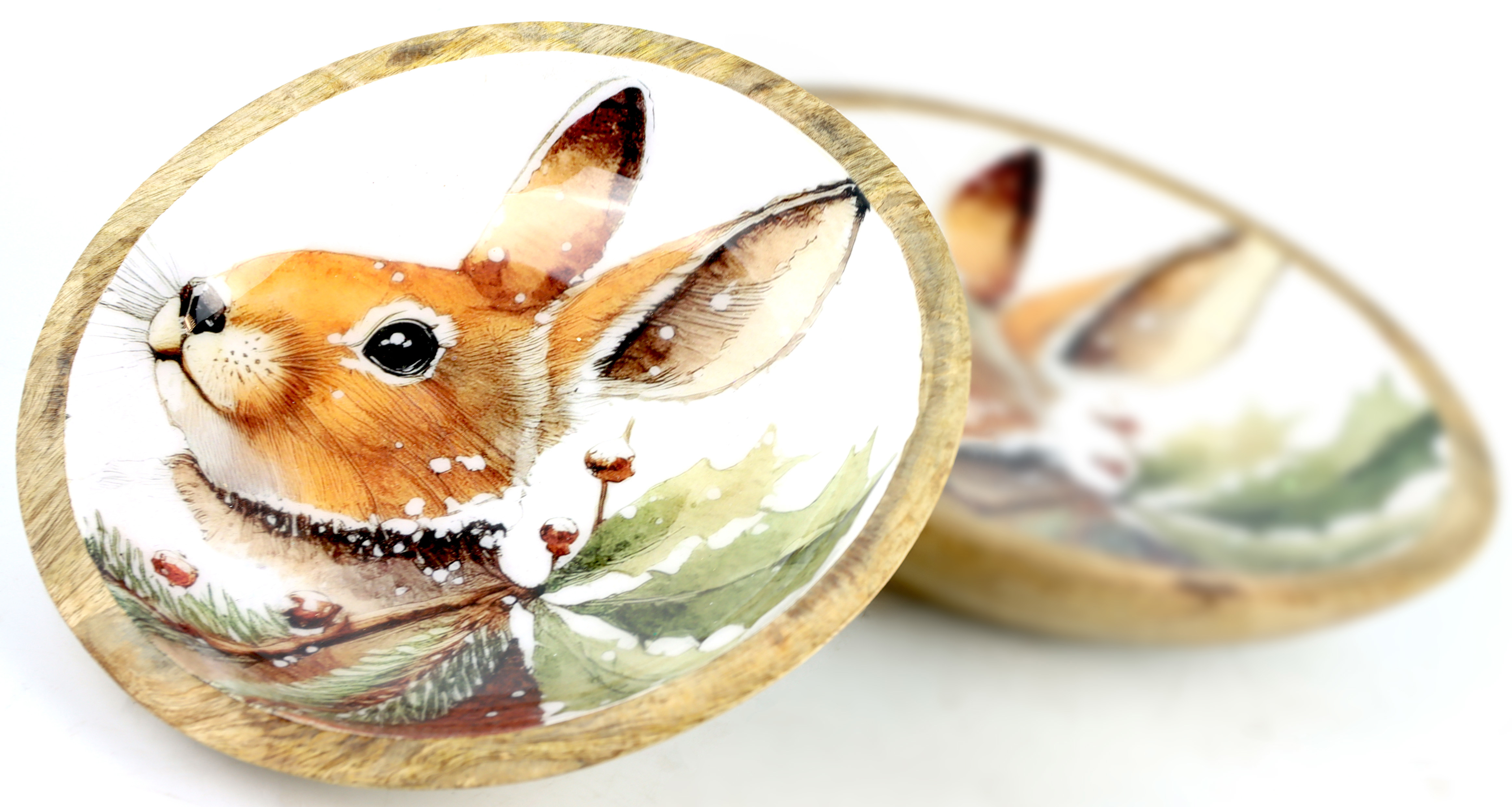 Verleihen Sie Ihrem Sortiment Individualität und einen Hauch von Exklusivität. Entscheiden Sie sich für die Holzschalen "Schneehase" und bieten Sie Ihren Kunden die Möglichkeit, ein Stück Natur und Eleganz in ihrem Zuhause willkommen zu heißen. Erhöhen Sie Ihre Ladenattraktivität und überzeugen Sie mit Exquisiten.