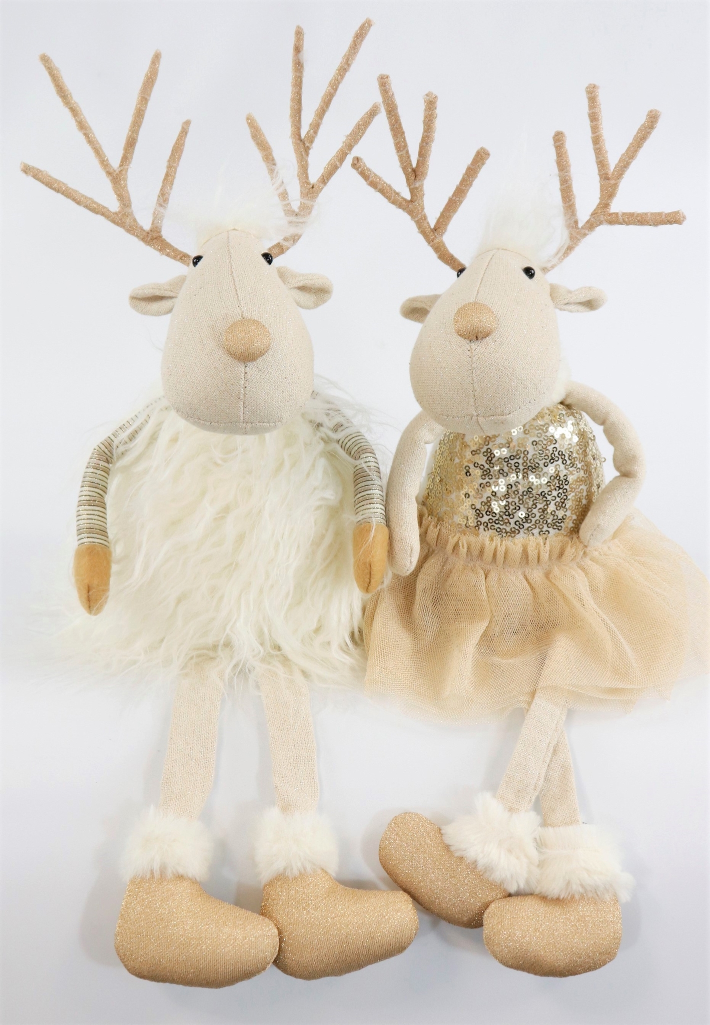 Bereichern Sie das Ambiente Ihrer Verkaufsfläche mit dem eleganten Elchpaar "Golden Dust" - ein absolutes Must-Have für die bevorstehende Weihnachtssaison. Dieses exklusive Set aus zwei kunstvoll gestalteten Elchen bringt einen Hauch von Luxus und festlicher Magie in jedes Raumkonzept des stationären Einzelhandels für Wohnen und Lifestyle. Mit seiner beeindruckenden Höhe von etwa 49 cm und der eleganten Farbkombination aus Creme und Gold ist das Elchpaar ein wahrer Hingucker, der Ihre Kunden begeistern wird.
