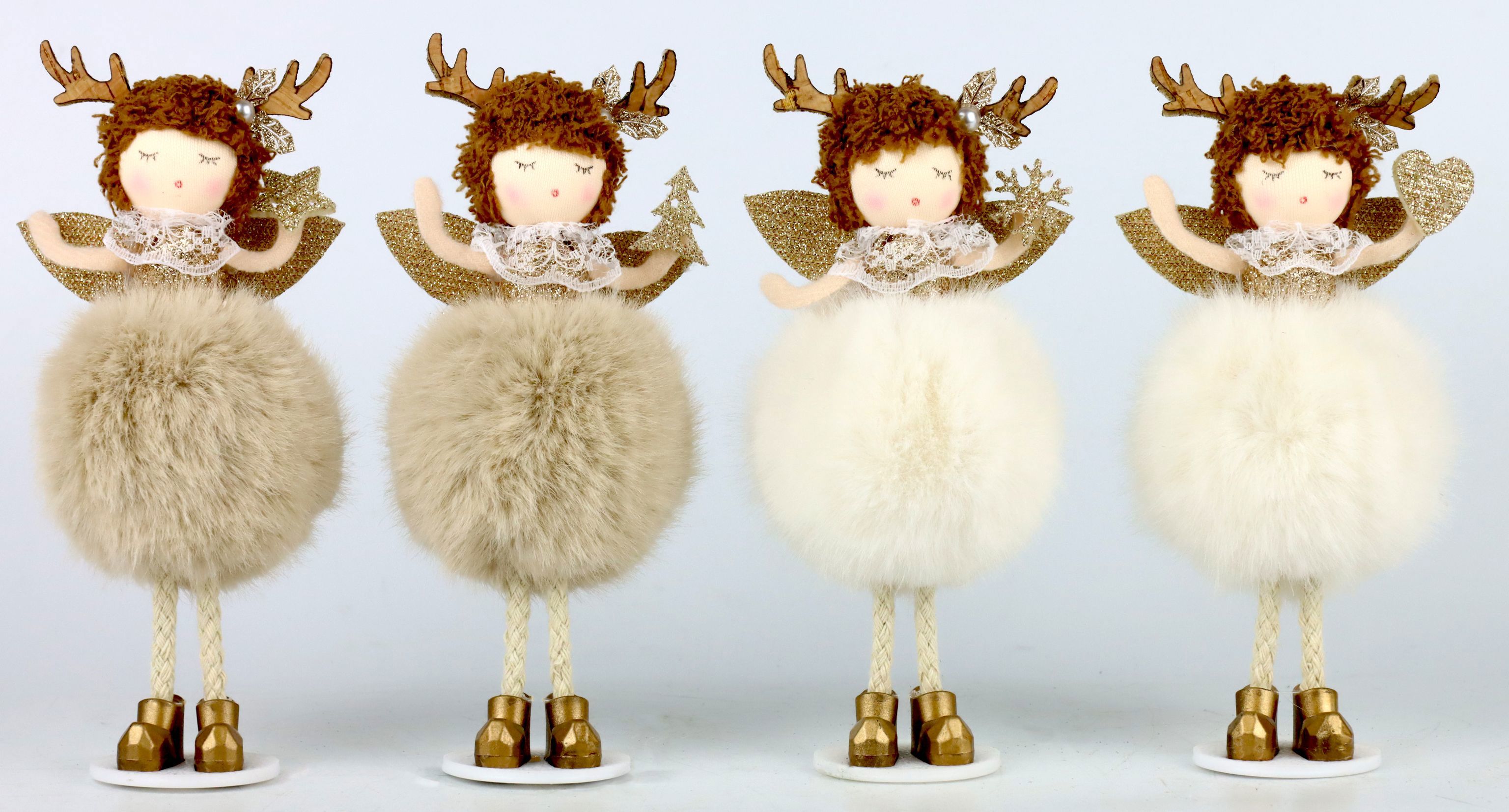 Tauchen Sie ein in die zauberhafte Welt von Weihnachten mit unserem exklusiven Engelset "Fluffy Grace". Dieses einzigartige Set, bestehend aus vier bezaubernden Engeln, bringt eine unnachahmliche Wohlfühlatmosphäre in das Interieur Ihrer Kunden und verleiht jedem Wohnraum eine festliche Note. Die Engel sind in einem eleganten und zugleich dezenten Farbschema aus Beige und Creme gehalten - ideal, um in jedem Einrichtungsstil zu glänzen und eine harmonische Weihnachtsdekoration zu schaffen.