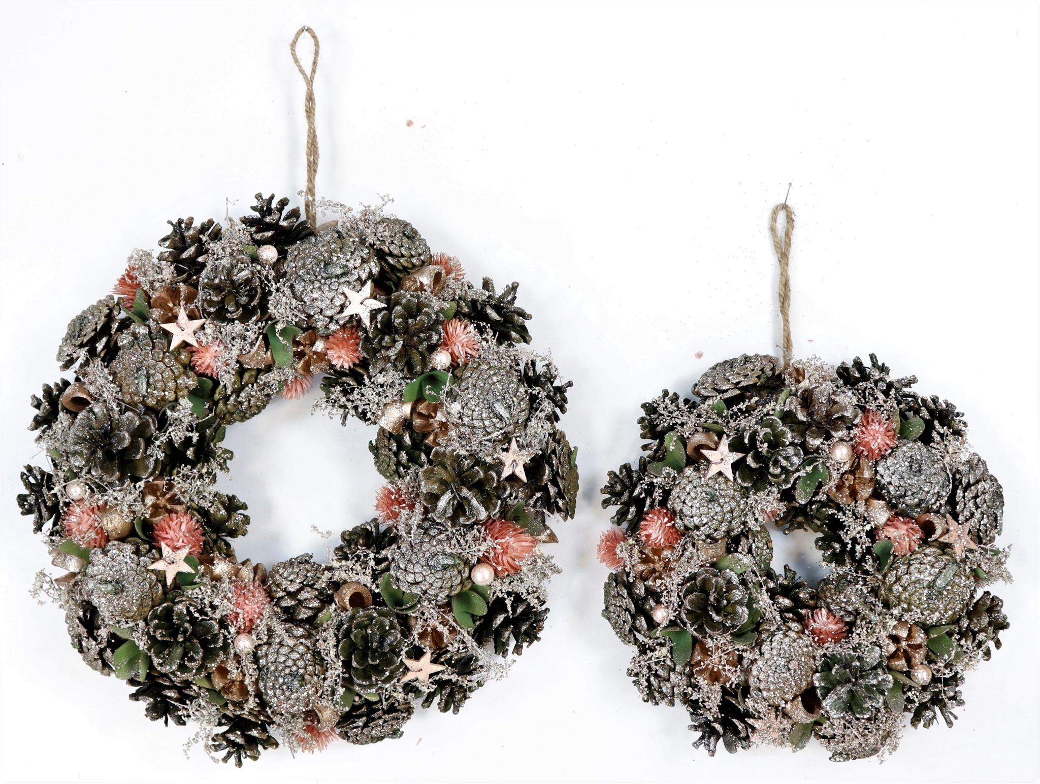 DEEntdecken Sie unseren prachtvoll designten Artikel, die zauberhaften Kränze „Silvretta“ S/2 (Artikelnummer: 6685), die speziell für die Weihnachtssaison kreiert wurden. Diese einzigartige Kreation ist der ideale Hingucker für jeden Wohn- und Lifestylebereich im stationären Einzelhandel und bestimmt auch für Ihre Kunden ein absolutes Must-have für das kommenden Weihnachtsfest.