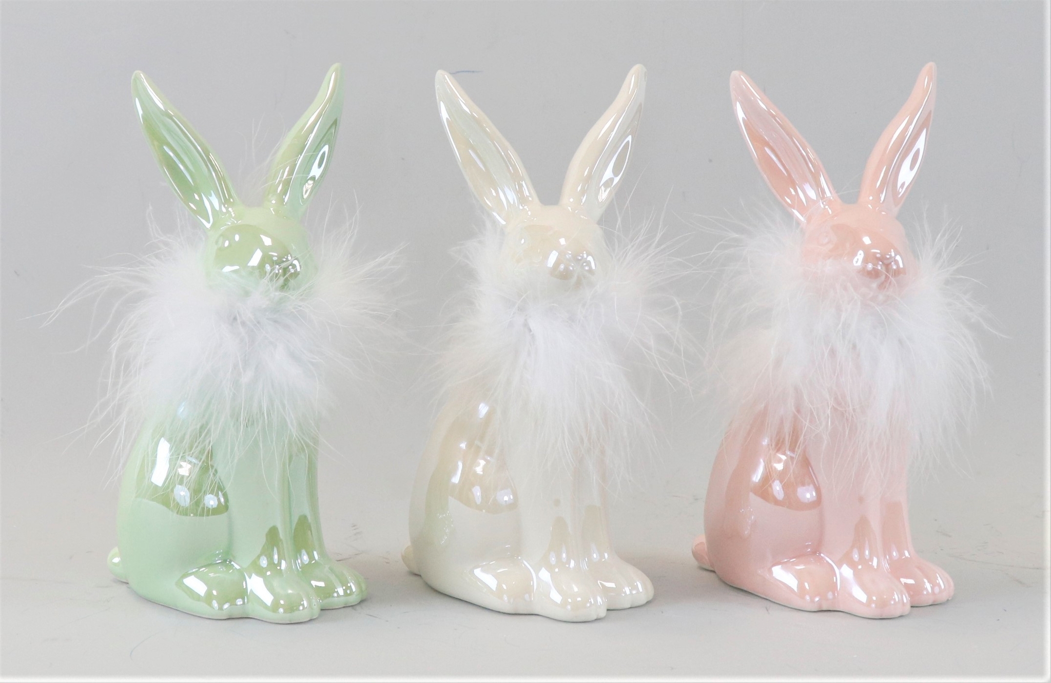 **Produktbeschreibung für das Hasenset "SHINE" - 3-teiliges Keramikset für Ostern**