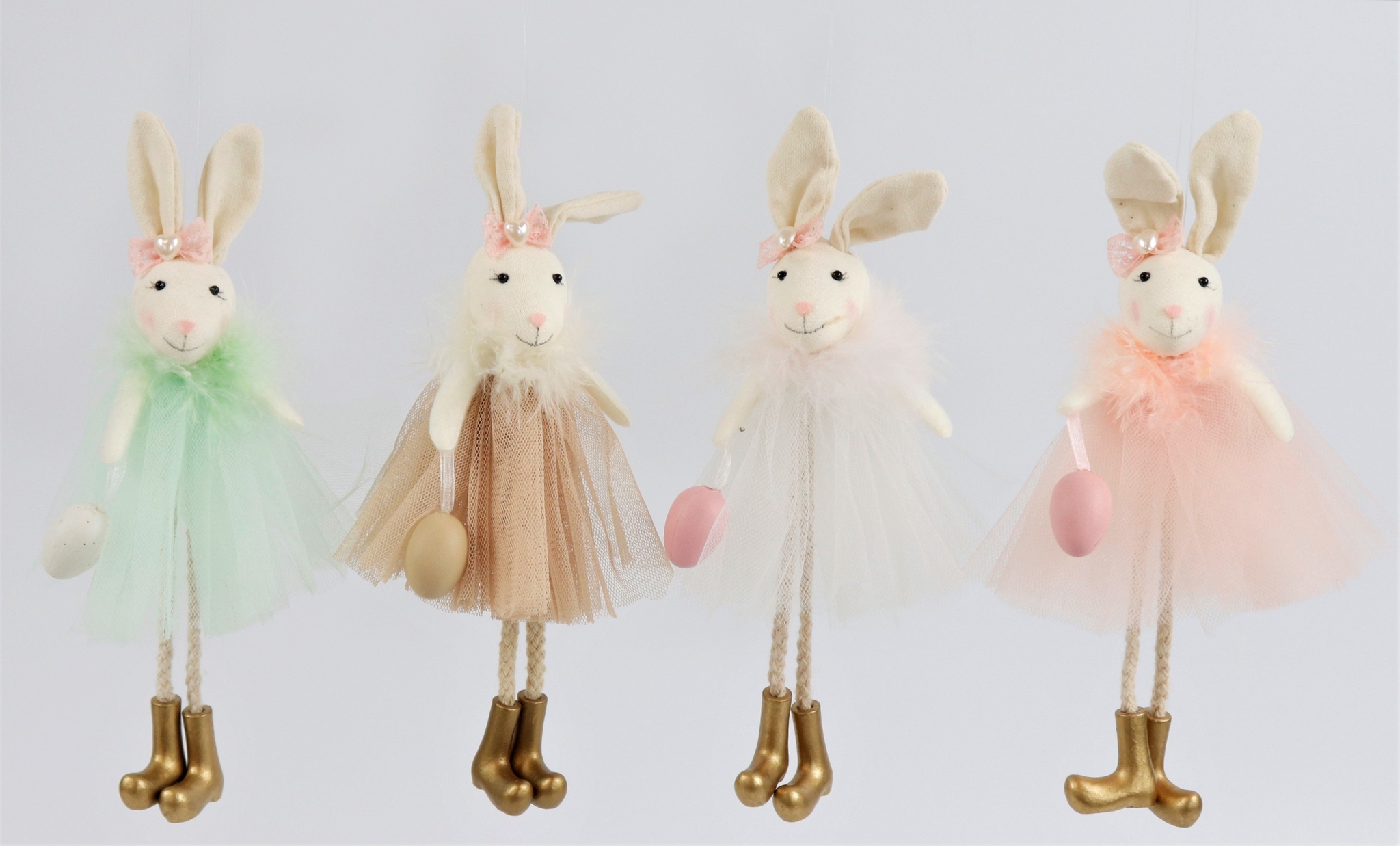 Die "JOLLY" Hasenmädchen sind aus hochwertigem Tüll, Baumwolle und Polyester gefertigt. Diese Materialkombination garantiert nicht nur ein ansprechendes Aussehen, sondern auch eine robuste Qualität, die den täglichen Anforderungen im Einzelhandel problemlos standhält. Die Tüllkleider verleihen den Figuren eine leichte und luftige Optik, die perfekt zu den zarten Frühlingsfarben und dem Thema Ostern passt.