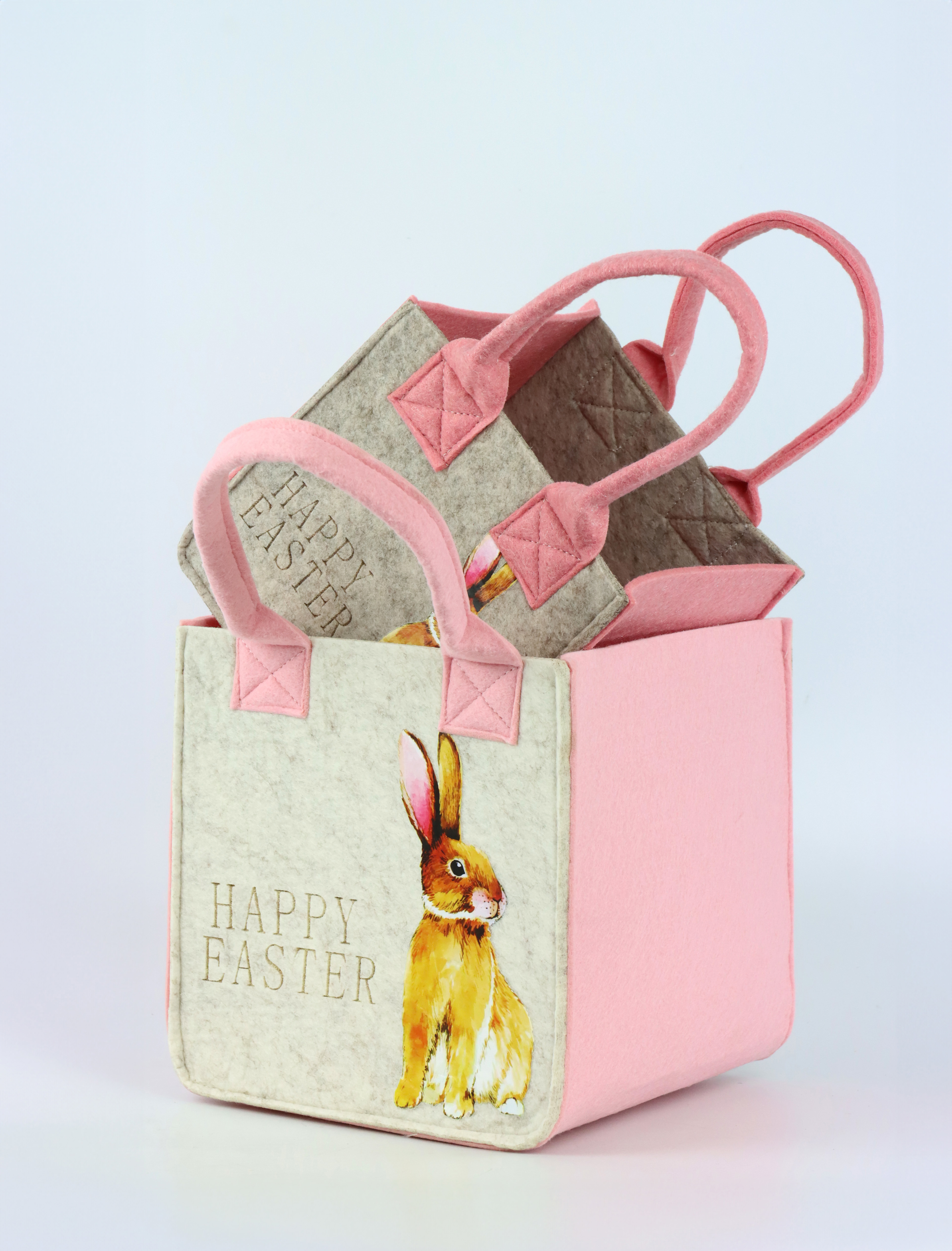 Setzen Sie neue Akzente in Ihrem Osterangebot und bereichern Sie Ihren Store mit den charmanten Filztaschen "Happy Easter" im 2er-Set – Qualität, die überzeugt und Design, das begeistert.