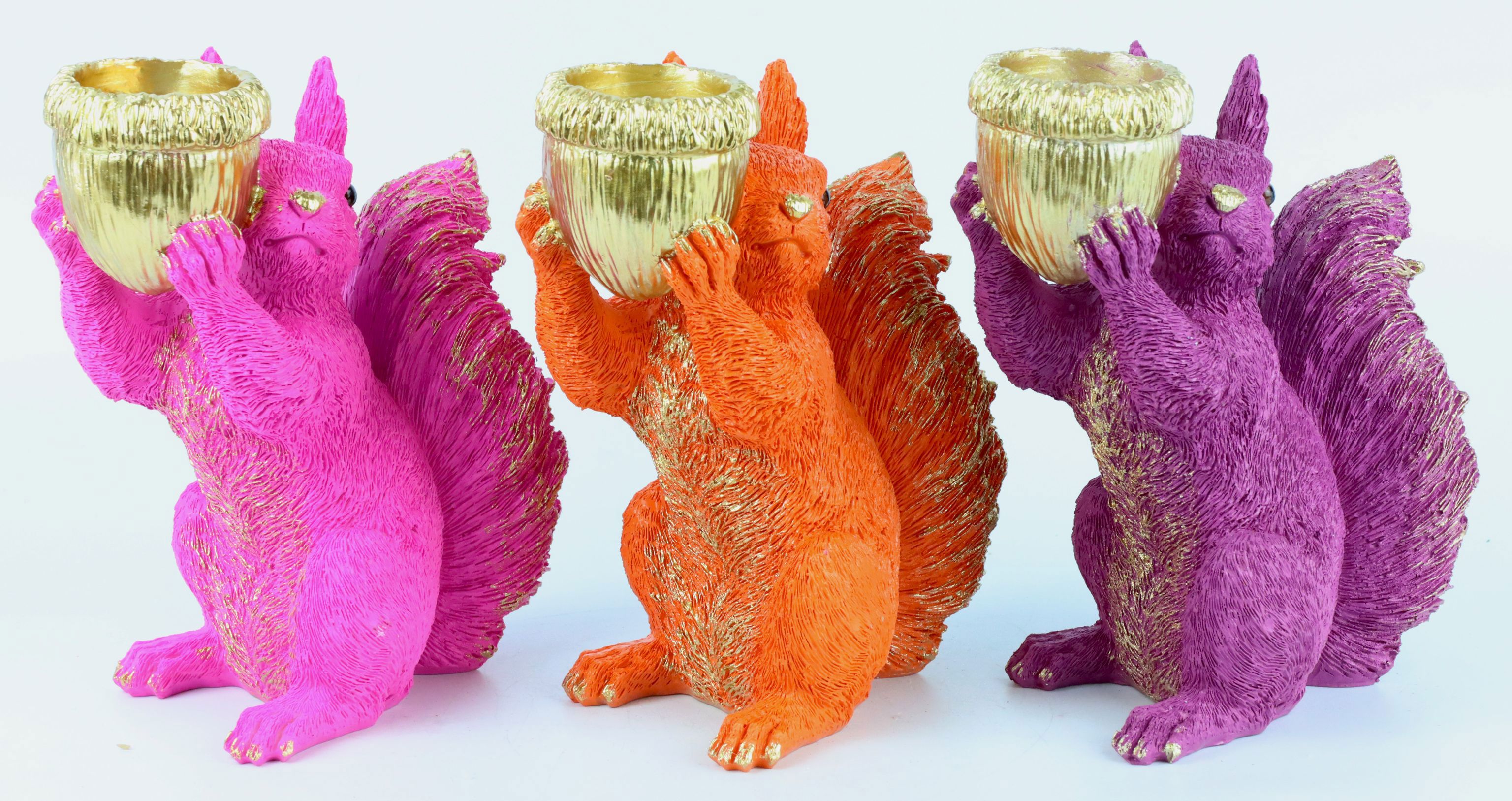 Unser Leuchter "Squirrels" S/3 ist das perfekte Geschenk für jeden, der seinem Zuhause eine einzigartige Note verleihen möchte. Sie sind auch eine wertvolle Ergänzung für Handelspartner, die ihren Kunden eine breite Palette von Wohn- und Lifestyle-Produkten anbieten möchten.