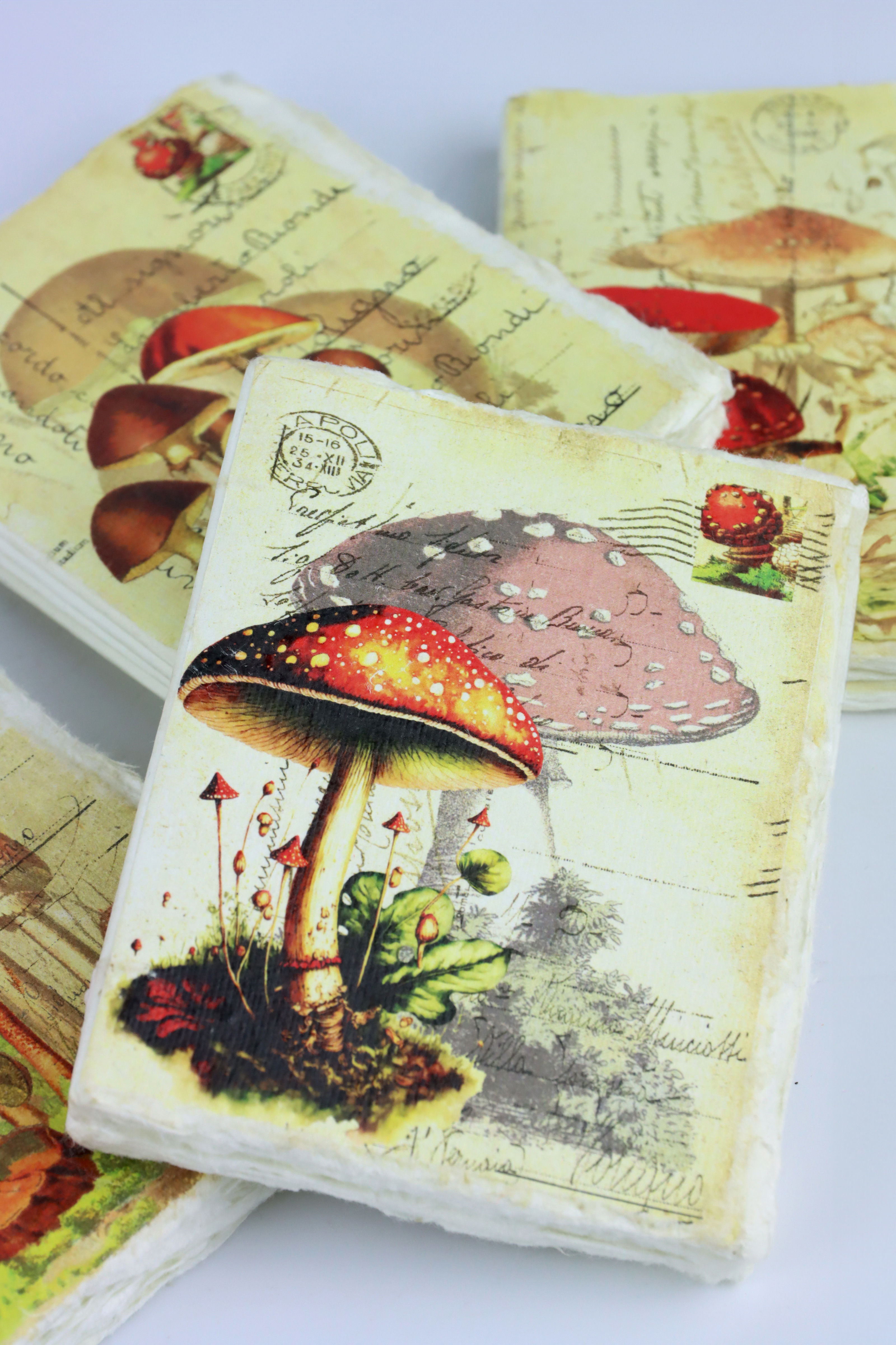 - Set of four notebooks in an appealing "lucky mushroom" design