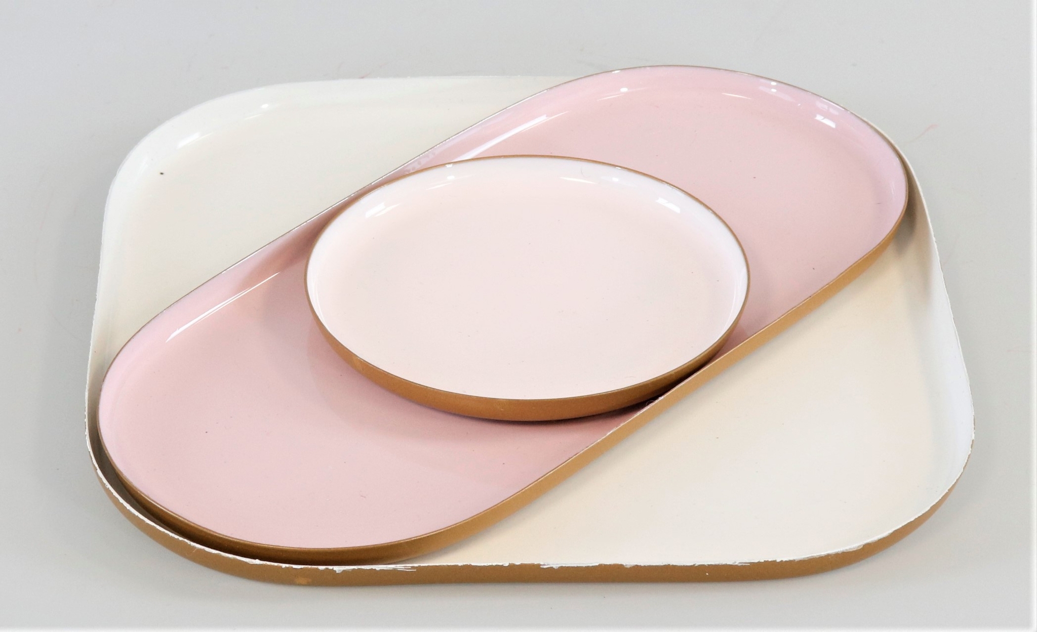 - Juego de bandejas de hierro de 3 piezas de alta calidad en elegante color crema