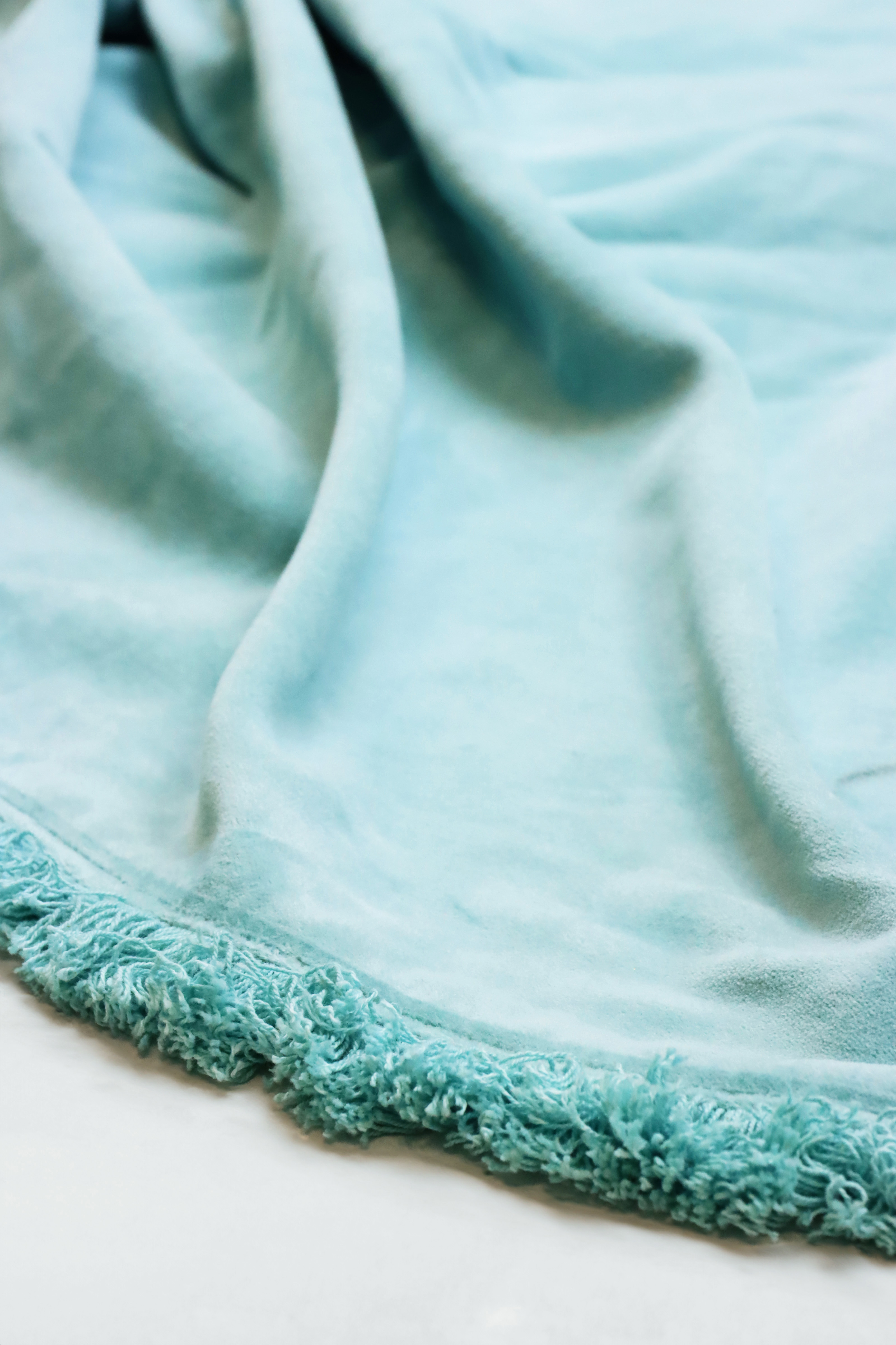 Lo primero que llama la atención de la manta "AZUR" es su bonito color. El azul celeste evoca los días soleados en la playa y crea un aspecto fresco y atractivo. Este color combina a la perfección con diversos estilos de decoración, desde el moderno al clásico, y aporta frescura y elegancia a cualquier habitación. Su diseño ligero pero resistente lo convierte en un compañero versátil para la temporada cálida.