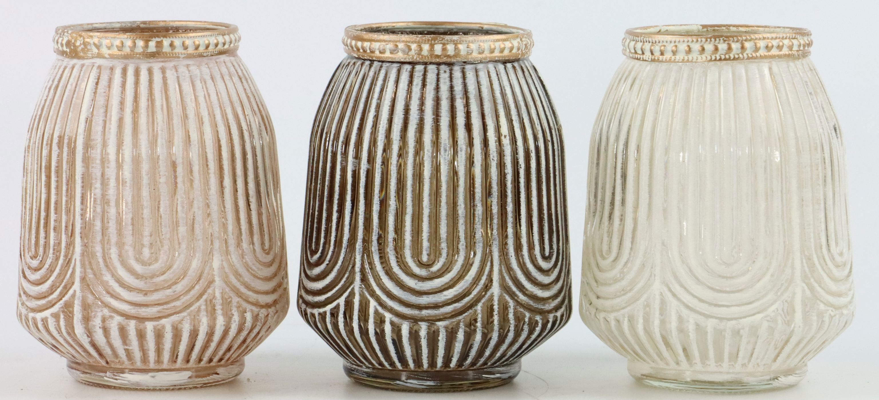 - Juego de 3 piezas de jarrones/velas votivas en colores naturales