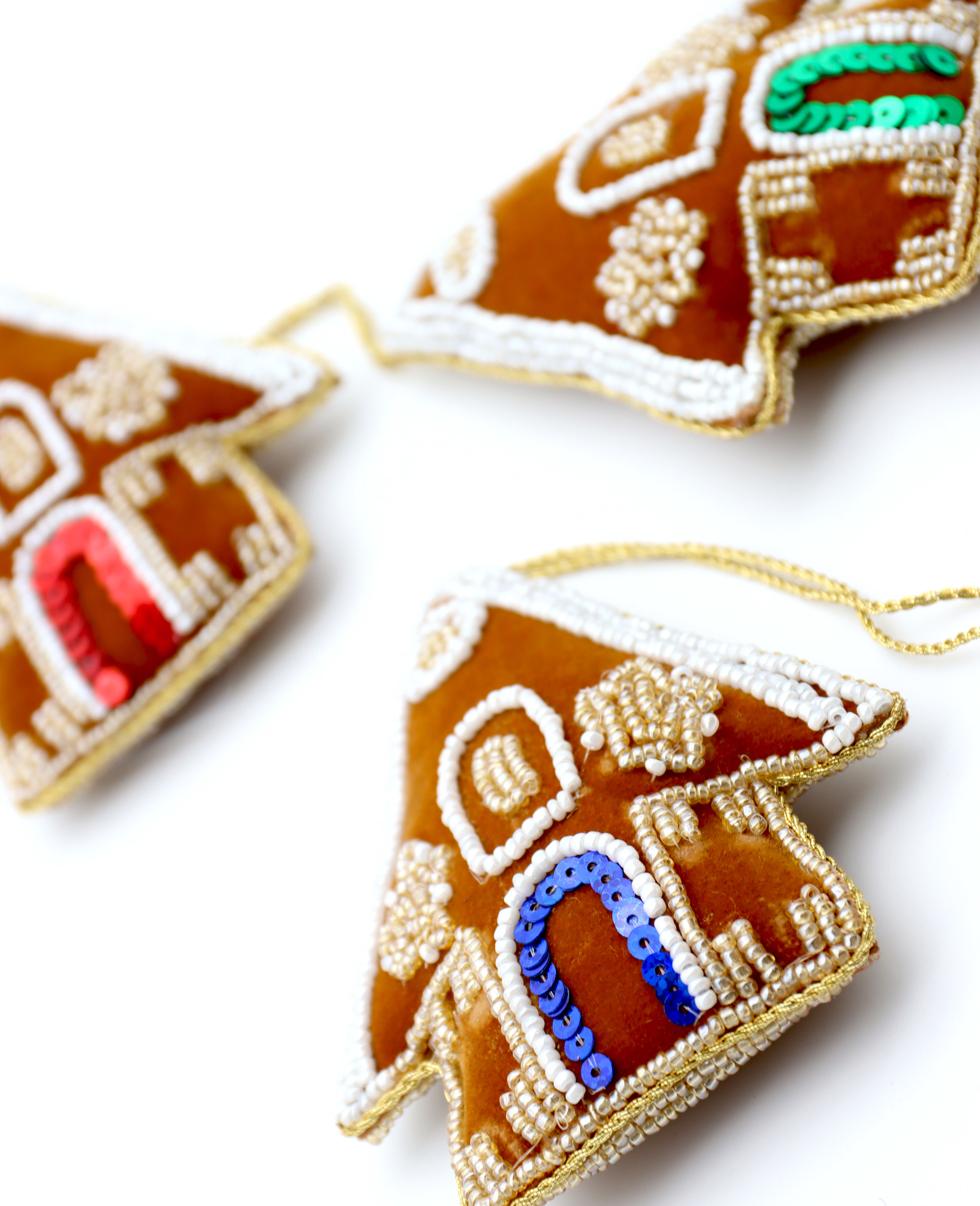 **Descripción del producto: Colgador de abalorios "Casa de jengibre" en un set (3 piezas) para Navidad**.