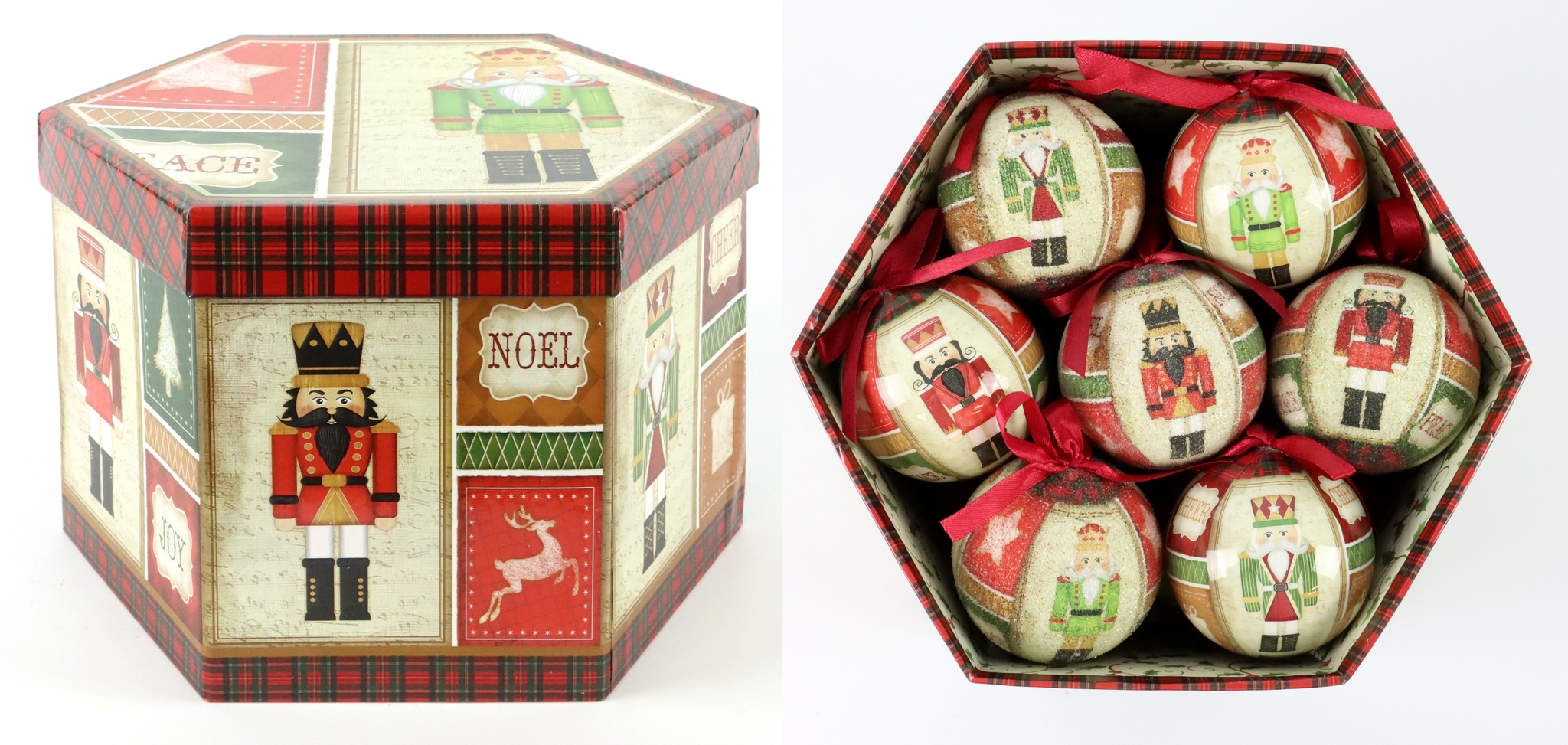 Sus clientes apreciarán los llamativos diseños y la excelente calidad de estos adornos navideños. Ya sea para decorar el árbol de Navidad o para exponer en mesas y estanterías, esta caja de chucherías "Cascanueces" S/14 resulta festiva y elegante en cualquier entorno.