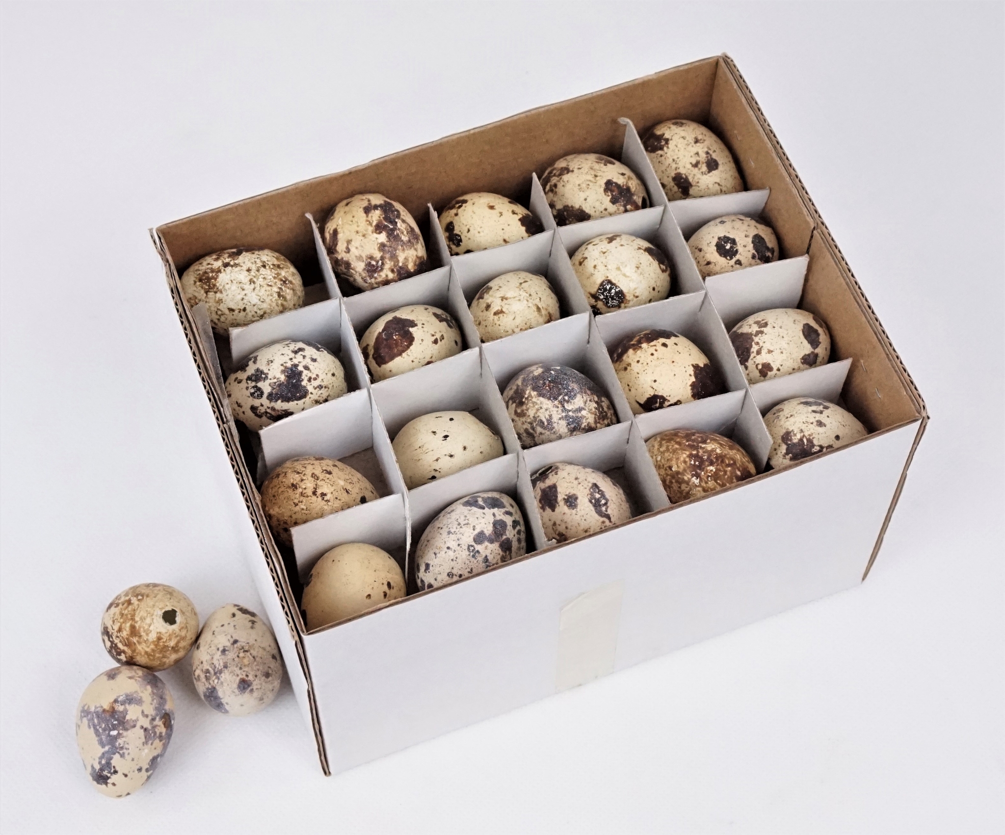 El periodo de Pascua es la oportunidad perfecta para ofrecer a sus clientes decoraciones únicas y naturales. Nuestra caja para huevos de codorniz S/60 cumple plenamente estas expectativas. Los huevos son ligeros pero resistentes e impresionan por su belleza natural y su dibujo individual, que confiere a cada huevo un aspecto único. Tanto si presenta las pequeñas obras de arte como discretos adornos de mesa en la tienda como si las utiliza como parte de un creativo proyecto de manualidades, le garantizamos que llamarán la atención.