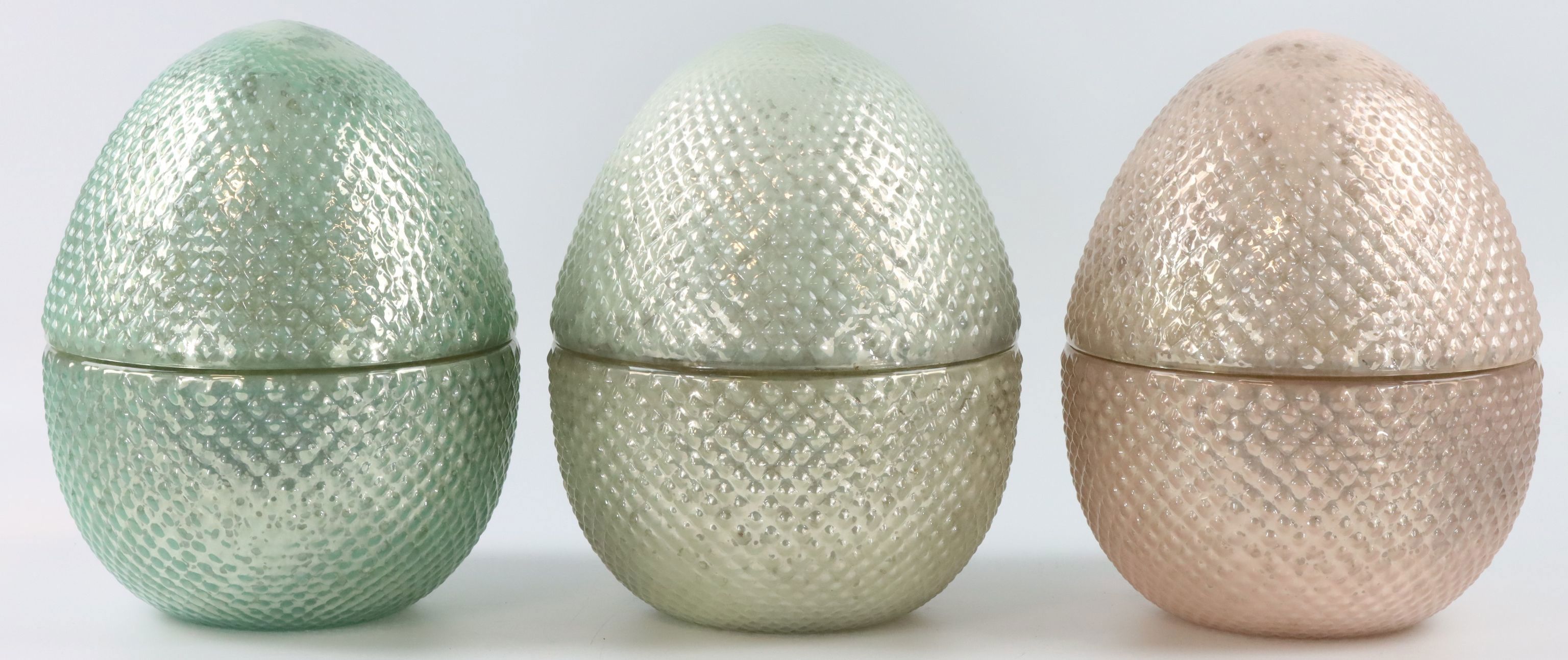 - Juego de tres piezas con una elegante forma de huevo para una decoración de Pascua llena de ambiente.