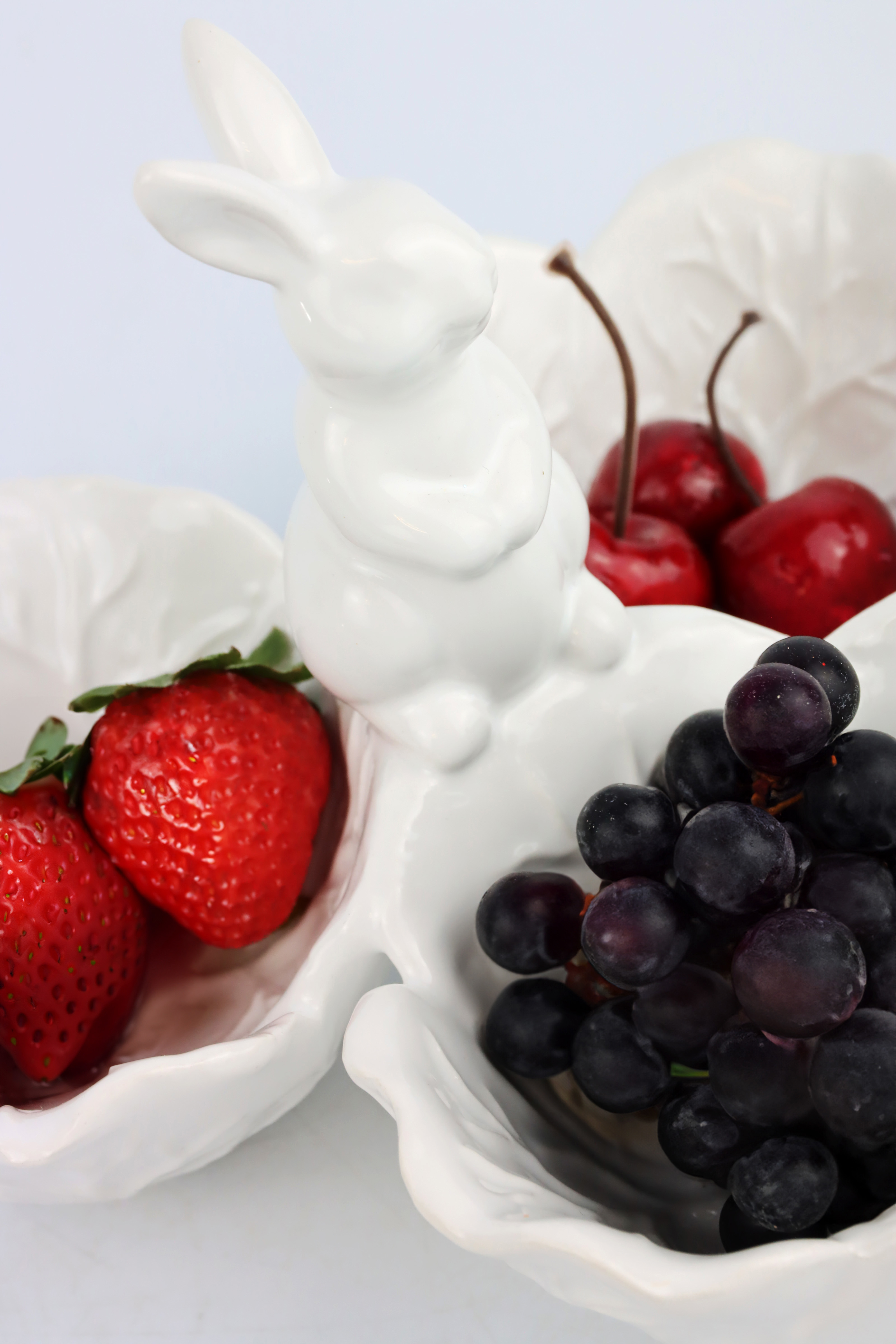ES**Trío de cuencos "Repollo blanco" con motivo de conejito de cerámica - La decoración de Pascua perfecta para el comercio**
