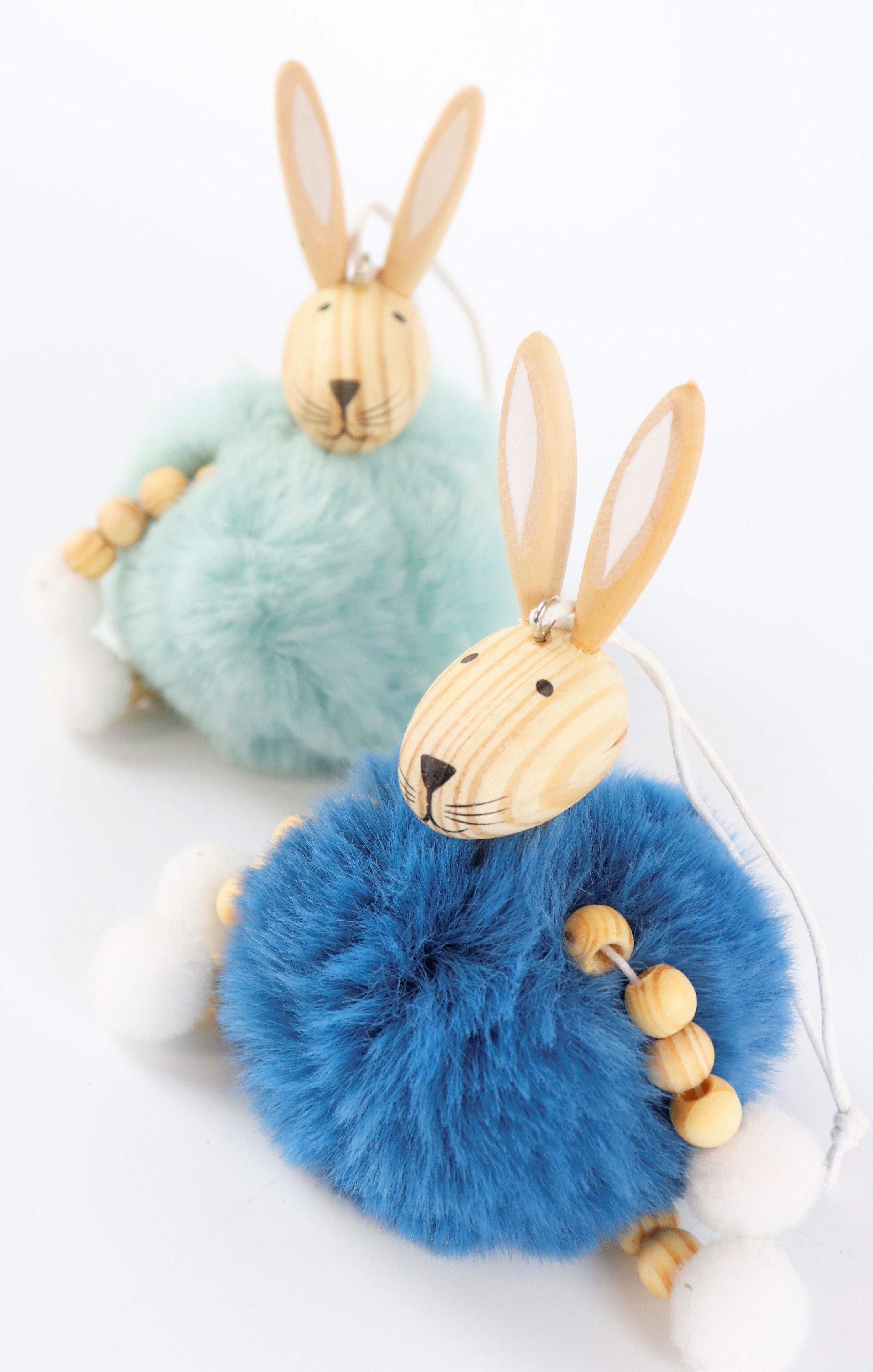 El juego de conejitos con pompones también ofrece la oportunidad de crear temas de temporada en su tienda y optimizar su escaparate. Son fáciles de colocar y se pueden combinar fácilmente con otros elementos decorativos. Gracias a la combinación de colores minimalistas en tonos azules, este conjunto es especialmente flexible y se adapta a una gran variedad de estilos de interior, desde el moderno al escandinavo, pasando por el juguetón estilo vintage.