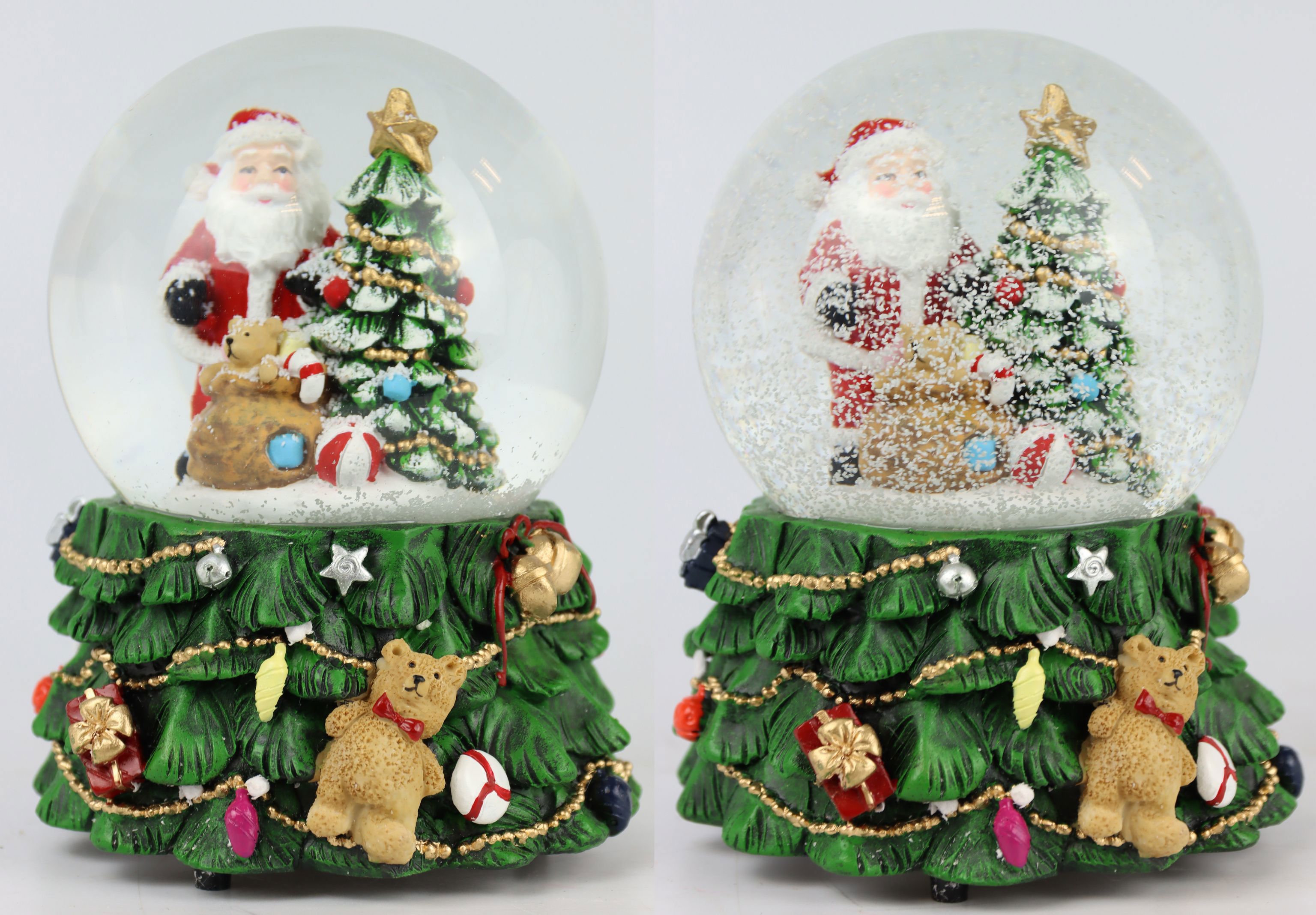 Fabriquée en polyrésine et en verre de haute qualité, la boîte à musique impressionne par sa hauteur d'environ 15 cm, la taille idéale pour chaque table de présentation ou chaque vitrine. Le Père Noël, conçu avec amour, est entouré d'un tourbillon de "neige" scintillante qui danse doucement dans l'eau de la boule à neige lorsque l'on remonte la boîte à musique. Cette fête visuelle est accompagnée de mélodies de Noël classiques qui retentissent lorsqu'on fait tourner la boîte à musique et qui créent une ambiance de recueillement.