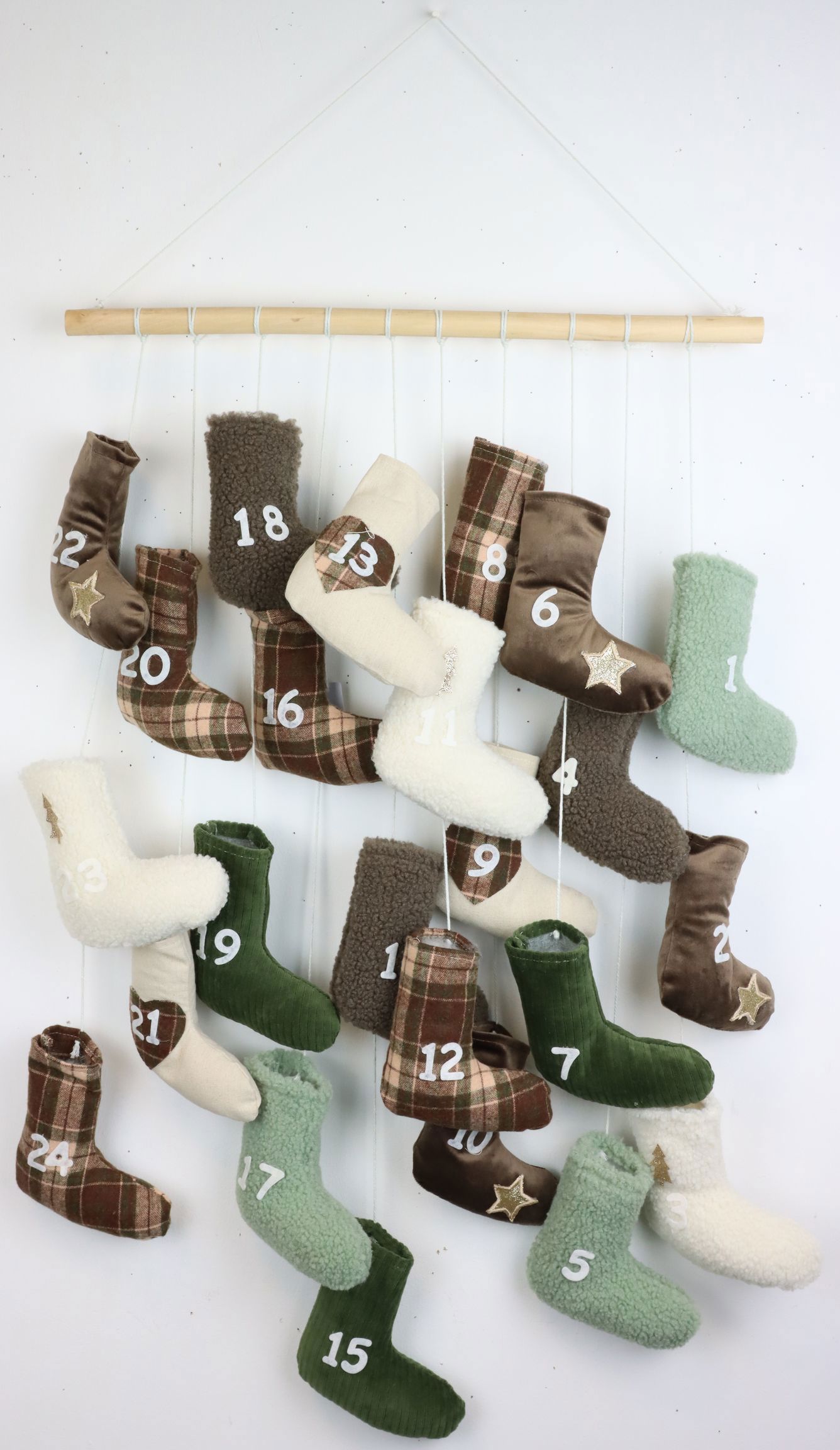 Que ce soit dans le salon, le couloir ou la chambre d'enfant, le calendrier de l'Avent 'Bottes' offre un point de mire chaleureux et accueillant. Ce calendrier de l'Avent est également un excellent choix de cadeau. Il répand l'esprit de Noël et remplit de joie le temps d'attente jusqu'à la fête.