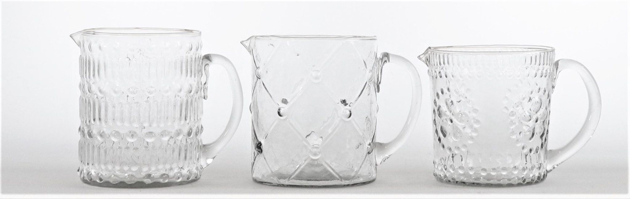 Scoprite il nostro raffinato set di tre brocche in vetro "Toledo", ideale per chi è attento allo stile della casa e del lifestyle. Queste brocche di vetro di alta qualità non sono solo un semplice recipiente, ma un vero e proprio richiamo visivo e un must per ogni cucina o tavola. Con una struttura attraente che riflette brillantemente la lucentezza del vetro, le brocche combinano funzionalità ed eleganza artistica.