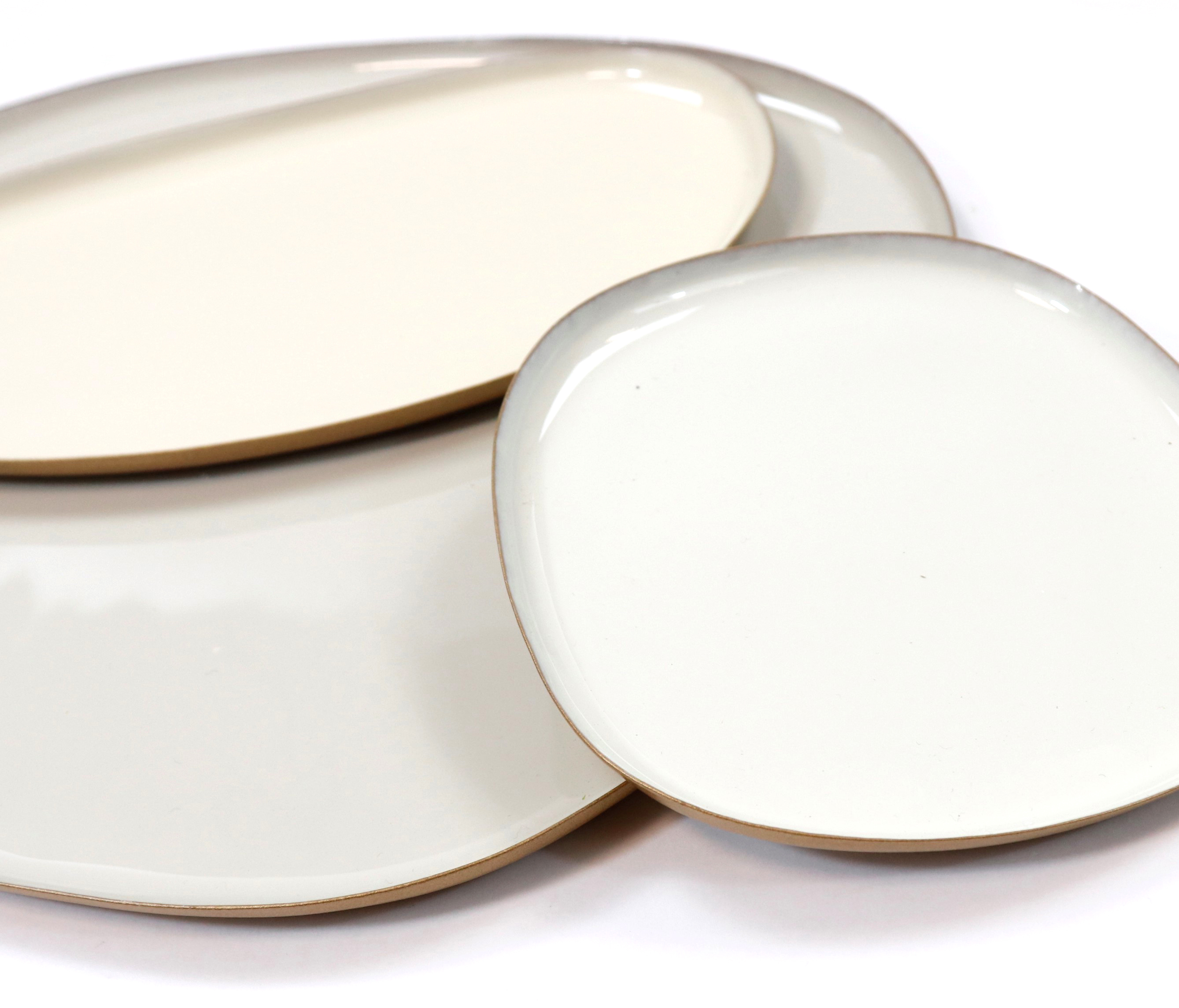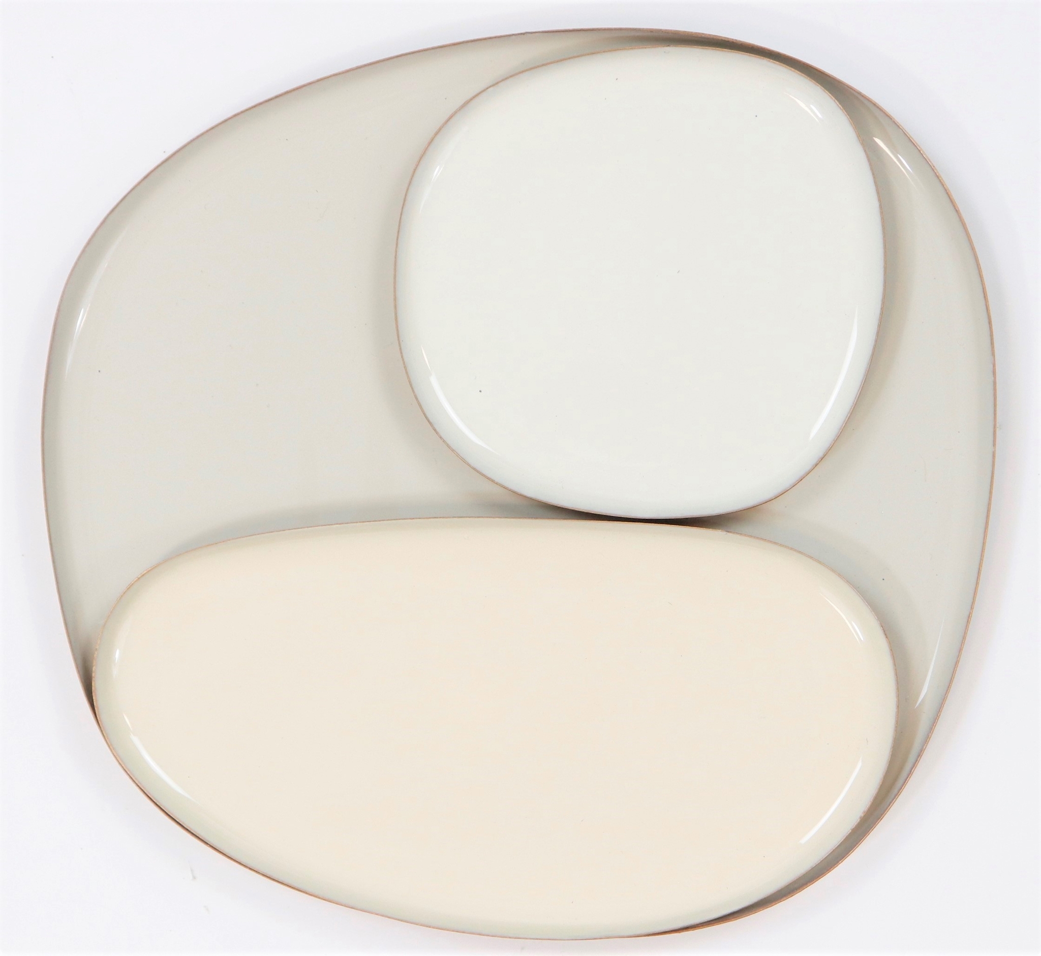 La forma ovale e morbida dei vassoi conferisce un'estetica armoniosa e accattivante a qualsiasi disposizione. Grazie al loro colore bianco neutro, si adattano perfettamente a qualsiasi interno e creano un'ambientazione elegante per accenti sia colorati che tenui. I vassoi sono realizzati con materiali di alta qualità che garantiscono robustezza e durata, in modo da mantenere la loro forma e il loro aspetto impeccabile anche nell'uso quotidiano.