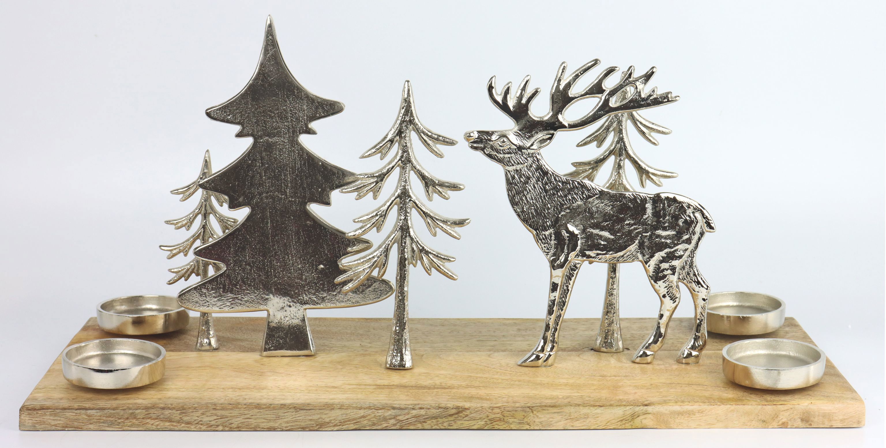 Parole chiave: portacandele, decorazione natalizia, decorazione festiva, prodotti lifestyle, accessorio per la casa, decorazione al dettaglio, foresta invernale, oggetto luminoso, decorazione in alluminio.