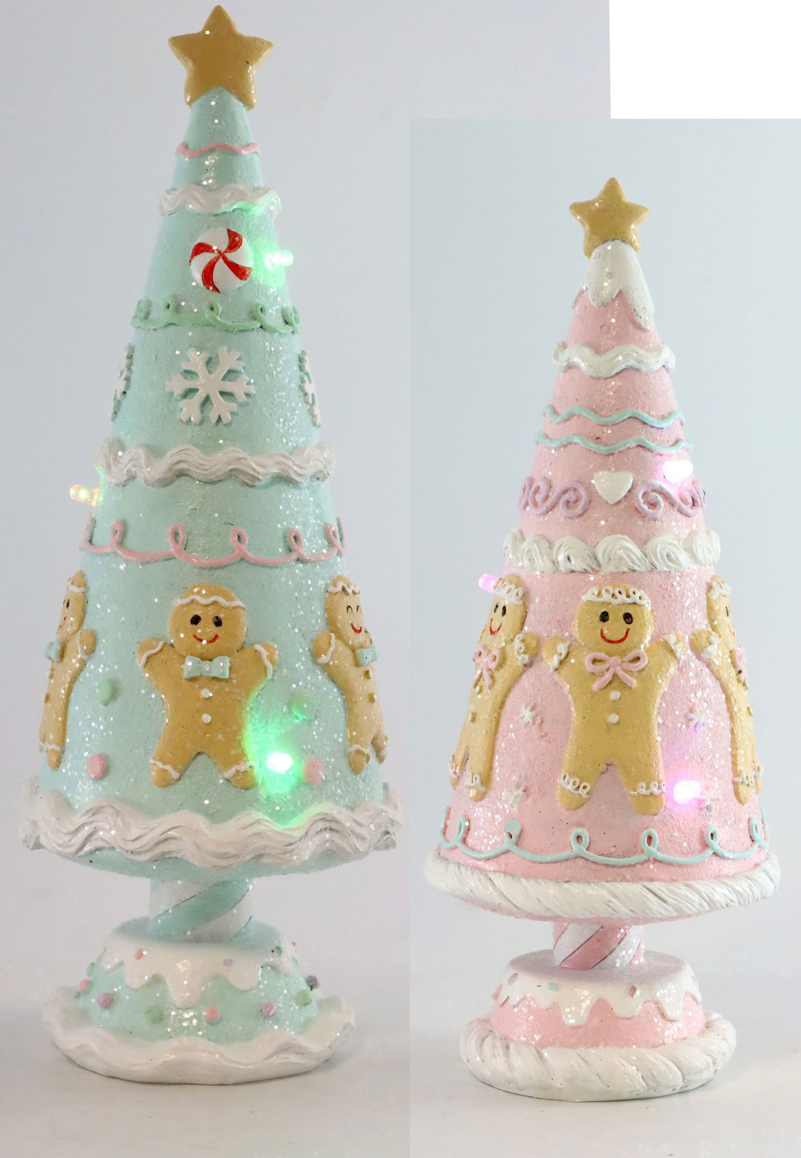 1. set di 2 alberi a LED nei colori pastello turchese e rosa