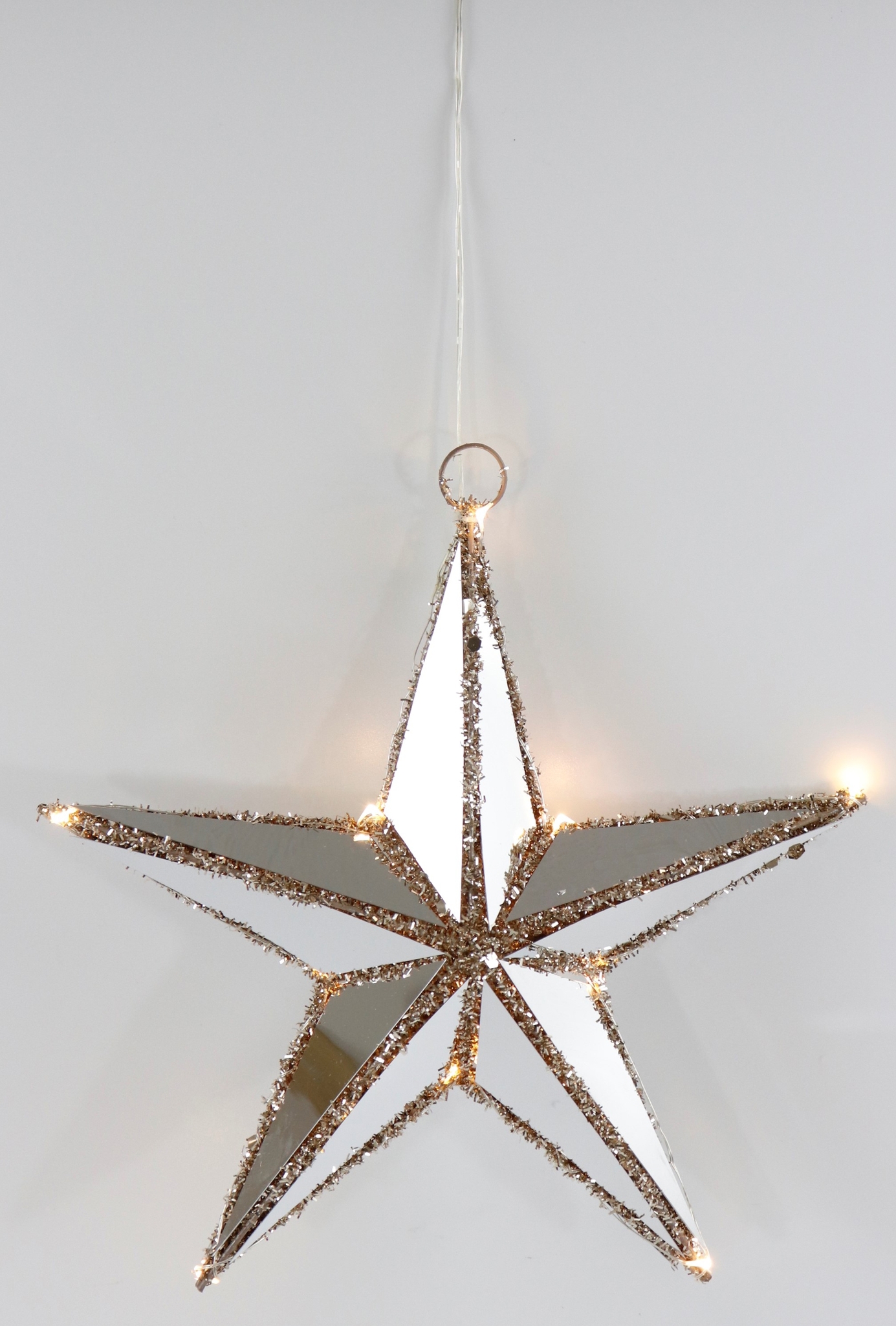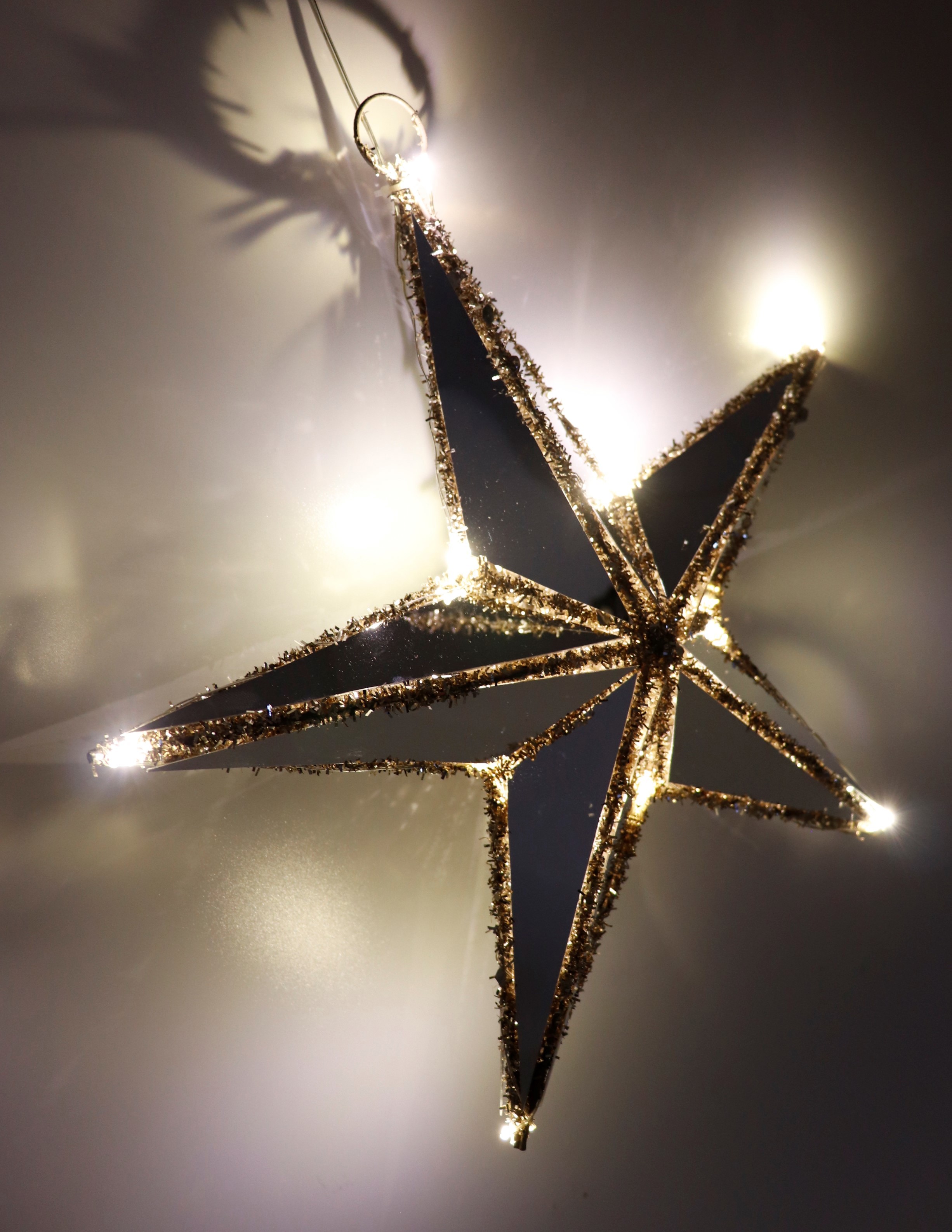 La stella illuminata a LED "REFLECTION" combina materiali di alta qualità come metallo, plastica e poliestere per creare un design unico e riflettente. Il bordo dorato aggiunge un tocco di lusso e raffinatezza a qualsiasi interno e si abbina perfettamente ai tipici colori natalizi. Grazie ai LED integrati, la stella crea una luce morbida e calda che avvolge ogni ambiente in un'atmosfera accogliente.