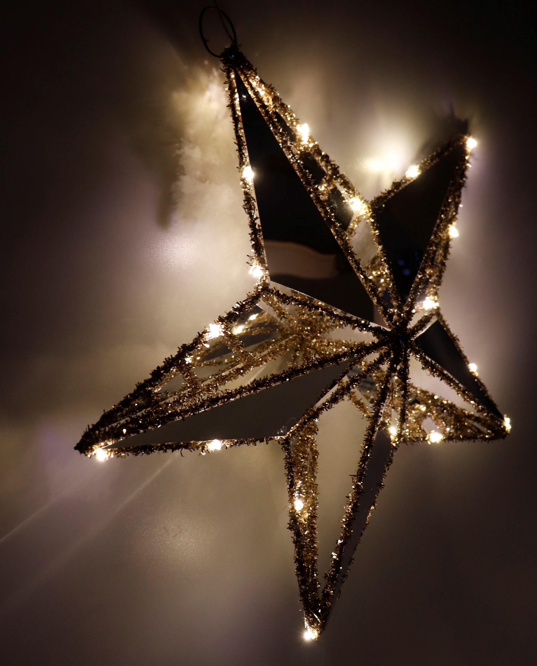 Grazie all'innovativa tecnologia LED, la stella luminosa "Reflection" emette una piacevole luce bianca calda che crea un'atmosfera incantevole. Con un diametro di circa 41 cm, questa stella è abbastanza grande da fungere da richiamo centrale in una vetrina o su una superficie decorativa. Il design realizzato con materiali di alta qualità come metallo, plastica e poliestere garantisce durata e robustezza, mentre l'effetto riflettente combinato con l'elegante bordo dorato aggiunge un tocco di lusso a qualsiasi ambiente.