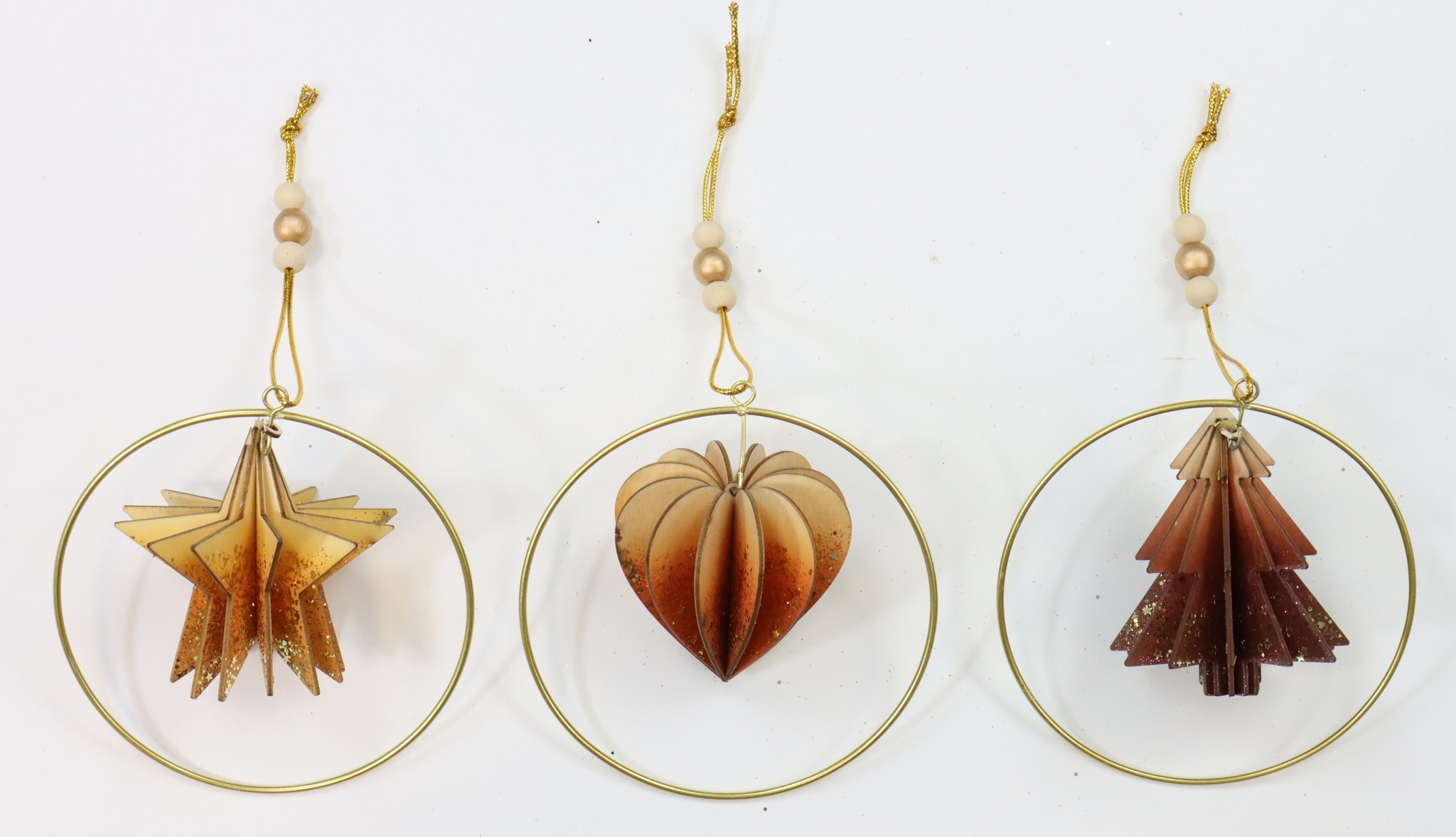 ITVivete la magia festiva della stagione natalizia con il nostro raffinato set di 3 pezzi di appendini in legno 3D "Natural Woods". Appositamente progettato per la vendita al dettaglio di articoli per la casa e il lifestyle, questo set di cuori, alberi di Natale e stelle offre una meravigliosa opportunità di aggiungere un elemento esclusivo e accattivante alla vostra gamma di prodotti. Ogni ornamento di questo set di prima classe combina il fascino rustico del legno con eleganti elementi metallici, che insieme creano un aspetto armonioso e naturale. Con una dimensione di circa 13 cm, questi appendini 3D sono l'aggiunta perfetta a qualsiasi ambiente natalizio.