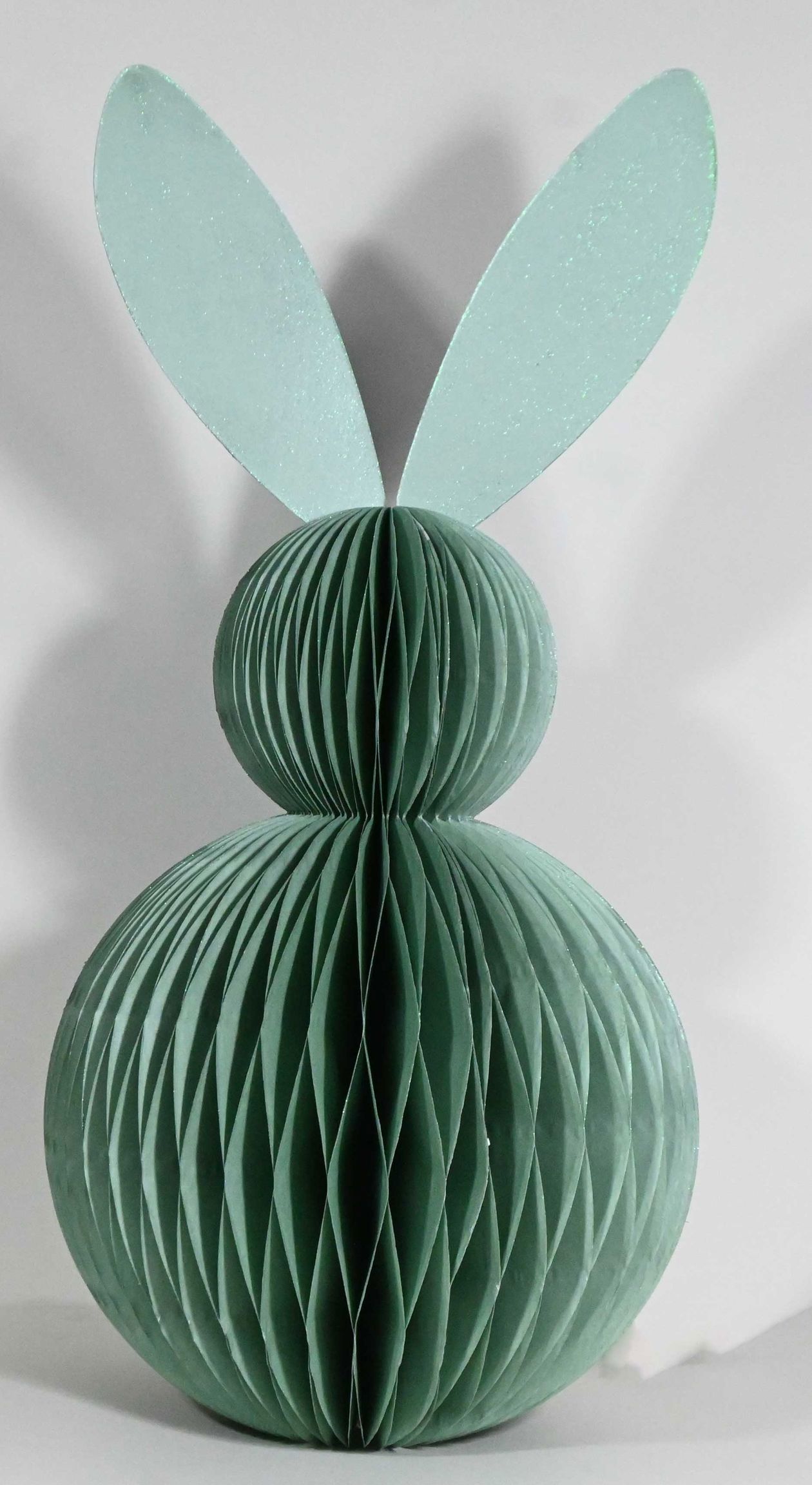 Scoprite l'incantevole coniglietto decorativo "HONEYCOMB" in un fresco colore verde che porterà le vostre decorazioni pasquali a un livello superiore. Realizzato in carta di alta qualità e progettato con cura, questo coniglietto pasquale di 50 cm si distingue per l'esclusiva struttura a nido d'ape. Questa speciale struttura non solo conferisce al coniglietto decorativo un accattivante aspetto tridimensionale, ma anche una notevole stabilità.