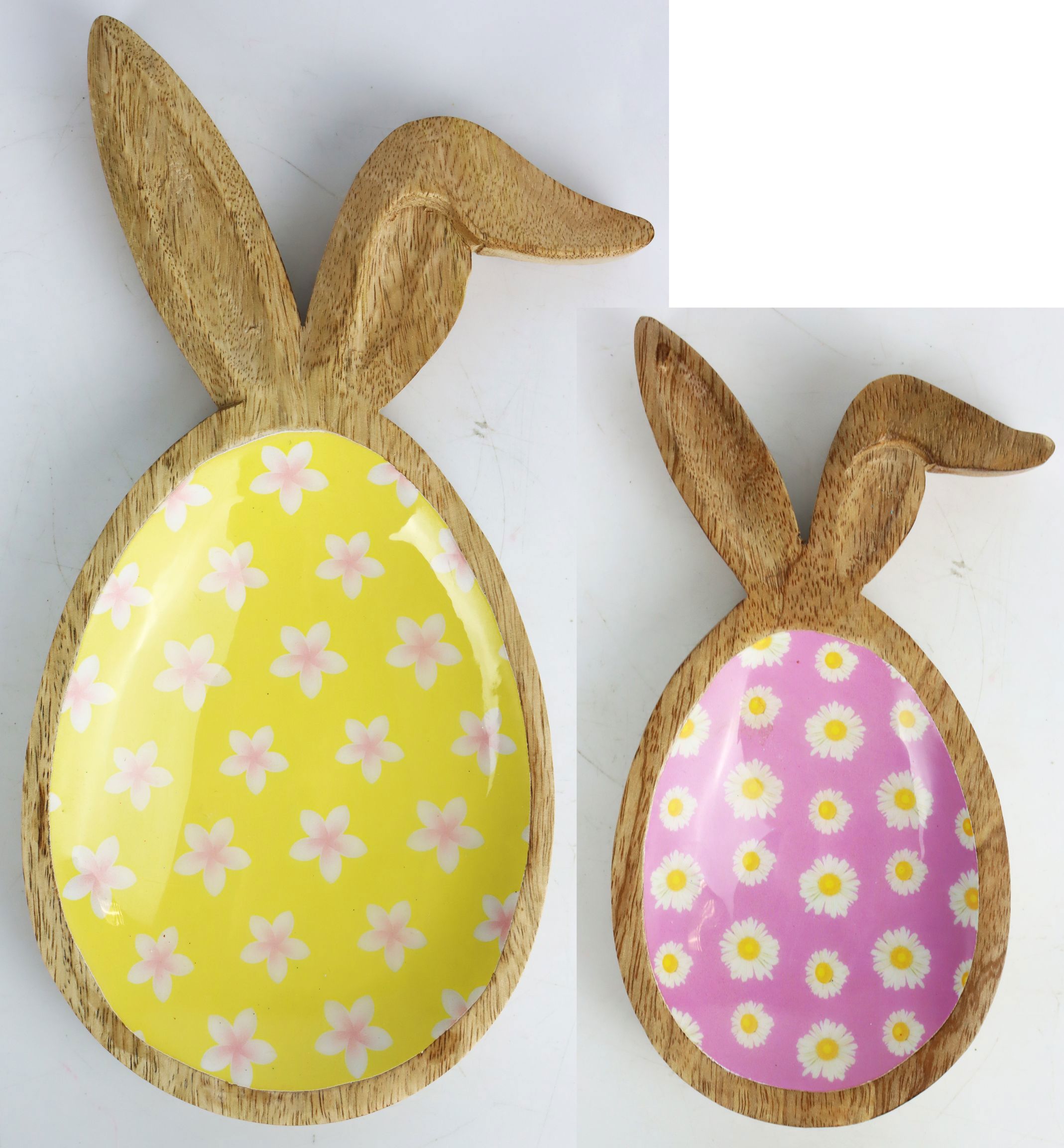 Scoprite le nostre esclusive ciotole in legno di mango "BUONA PASQUA" - un esclusivo set di 2 pezzi che aggiungerà un fascino giocoso ed elegante alla vostra tavola di Pasqua. Queste ciotole per uova realizzate a mano non sono solo accattivanti, ma anche un'ottima scelta per chi vuole aggiungere quel qualcosa in più alle proprie decorazioni pasquali. Con le caratteristiche orecchie da coniglio e le venature naturali del legno di mango, il set offre una perfetta combinazione di artigianato tradizionale e design moderno.