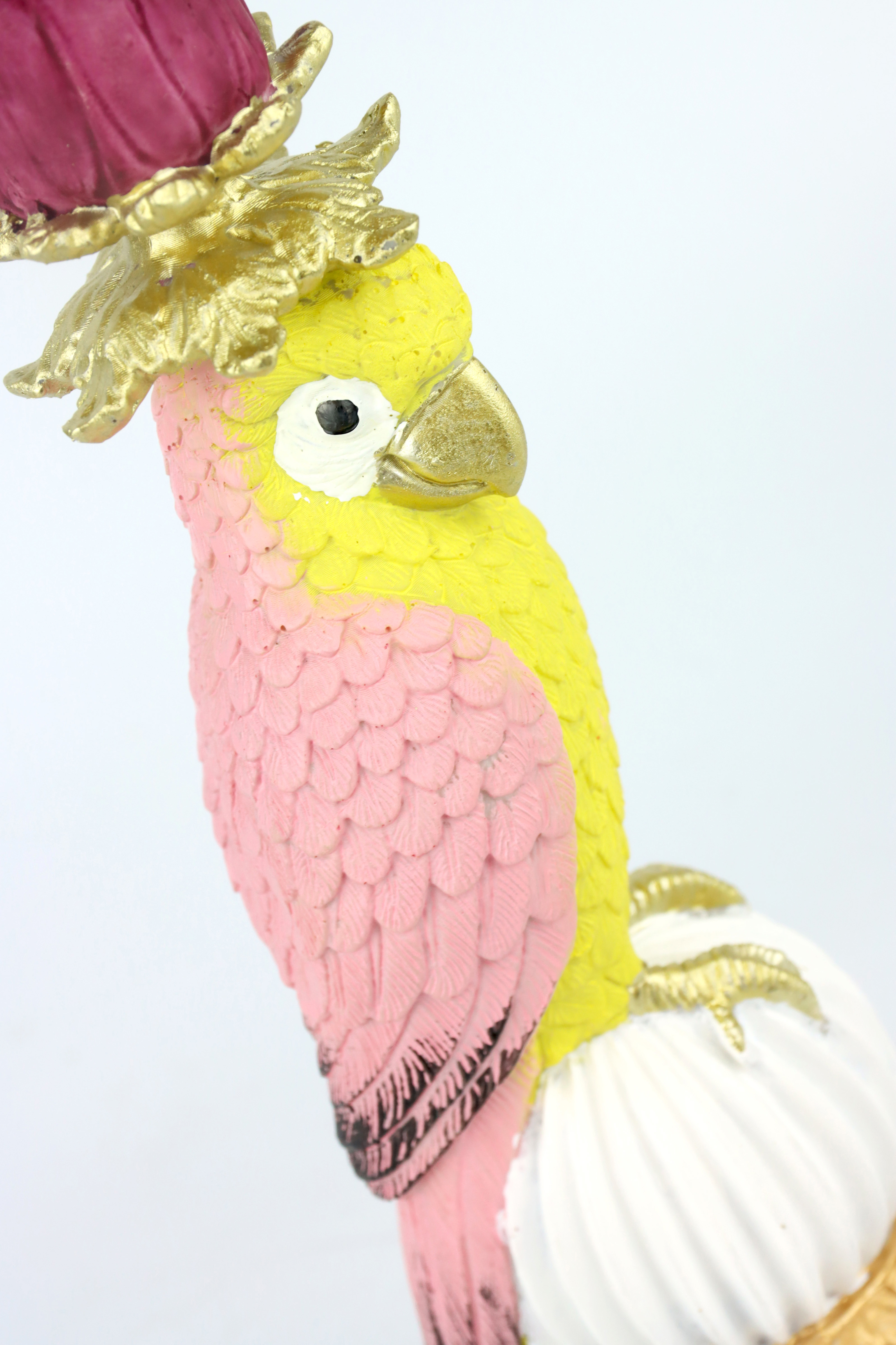 Unser Leuchter "Paradise Parrot" in auffälligem Gelb ist aus hochwertiger Keramik gefertigt und verspricht nicht nur ästhetische Schönheit, sondern auch Langlebigkeit. Die gelungene Kombination aus Keramik, Polyresin und Metall sorgt für eine stabile und ansprechende Konstruktion, die jedes Wohnzimmer, jeden Ausstellungsraum oder jeden Einkaufsladen bereichert. Mit einer Höhe von ca. 28 cm eignet er sich hervorragend als zentrales Dekorationselement auf dem Tisch, in einem Regal oder auf dem Kaminsims.