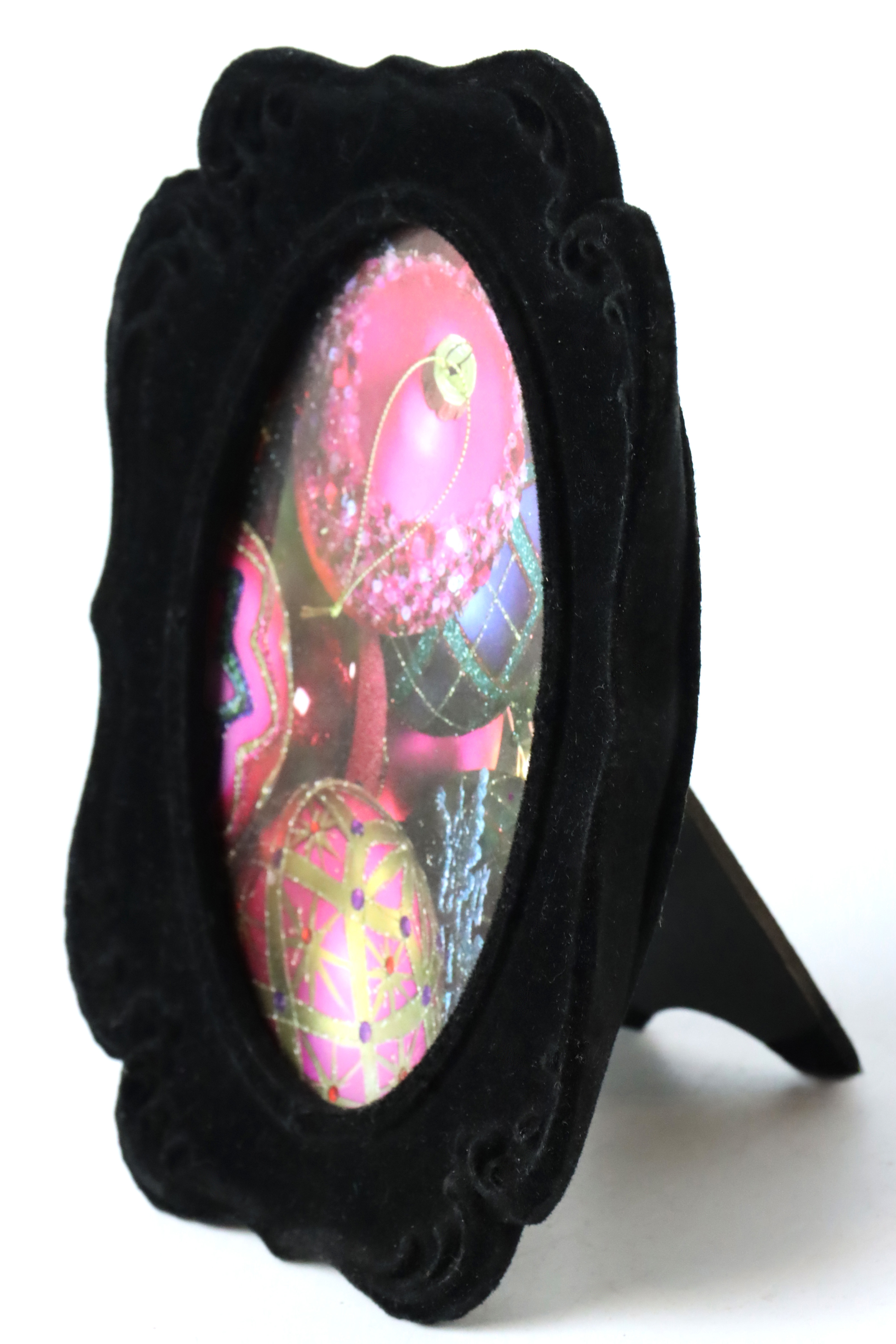4. Beschreibung: Schwarzer Bilderrahmen aus robustem Kunststoff, Maß ca. 18x12cm.