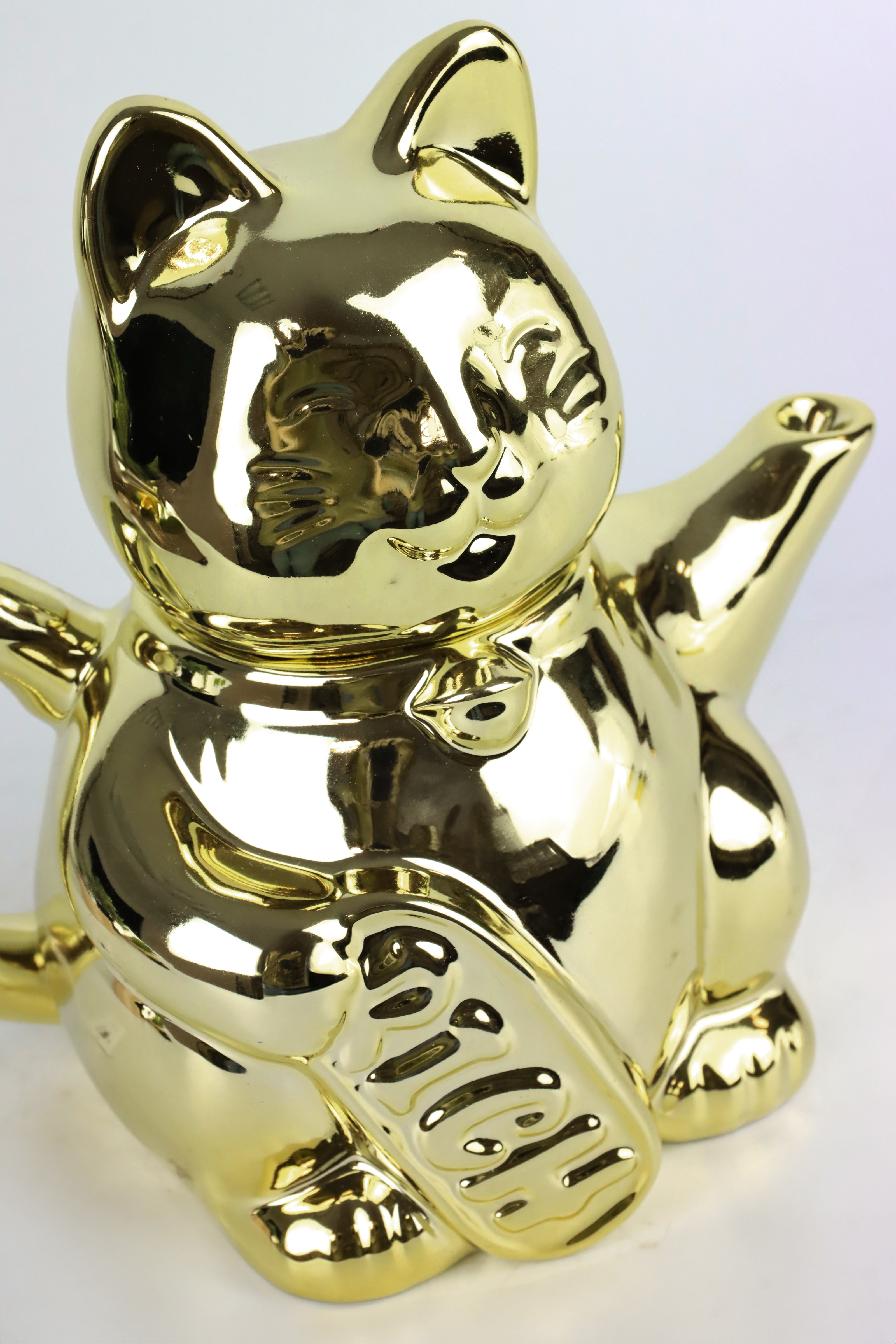 Tauchen Sie ein in die Welt des stilvollen Wohnens mit unserer exklusiven Kanne "LUCKY CAT" – einem einzigartigen Meisterwerk für den stationären Einzelhandel im Bereich Wohnen und Lifestyle. Diese kunstvoll gestaltete Kanne in Katzenform verleiht jedem Raum ein Hauch von Eleganz und Glück. Das glänzende Goldfinish macht sie nicht nur zu einem funktionalen Küchenaccessoire, sondern auch zu einem beeindruckenden Dekorelement, das die Blicke Ihrer Kunden auf sich zieht.