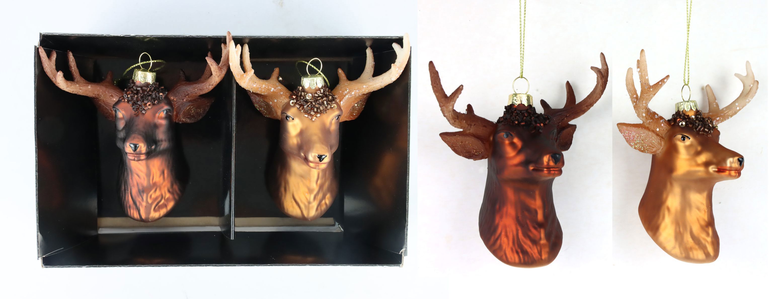 **Produktbeschreibung: Glasschmuck "Hirschkopf" im 2er Set – Eleganz aus Glas für ein festliches Ambiente**