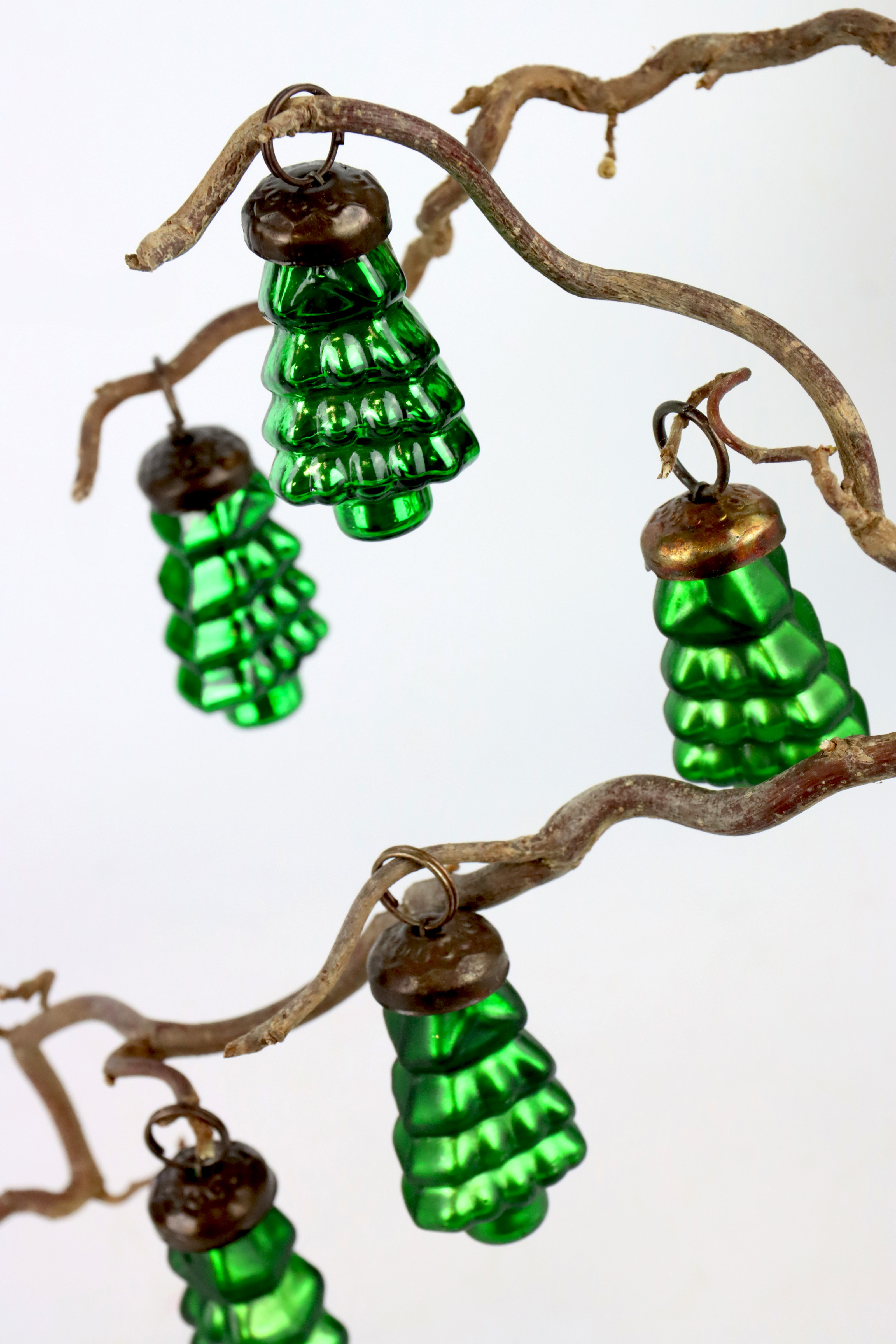 Gebräuchliche Keywords: Weihnachtsdekoration, Baumschmuck, Wohn- und Lifestyle-Einzelhandel, hochwertige Produkte, Verkaufsartikel, Weihnachtssaison, Glasornamente, Holzornamente, grüner Baumschmuck.