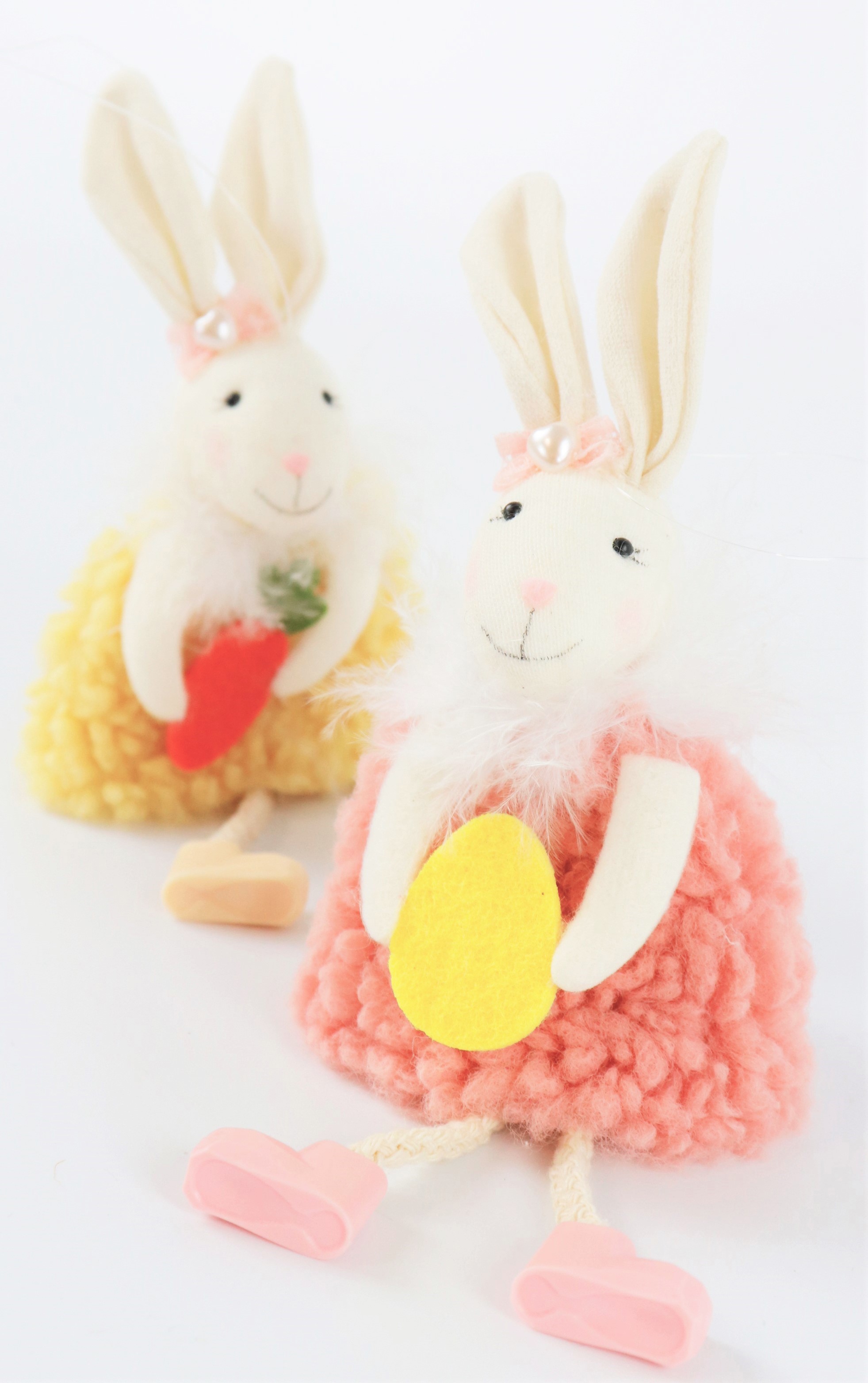 - Vierteilige Hasen-Dekoration aus Polyester, Fell und Kunststoff