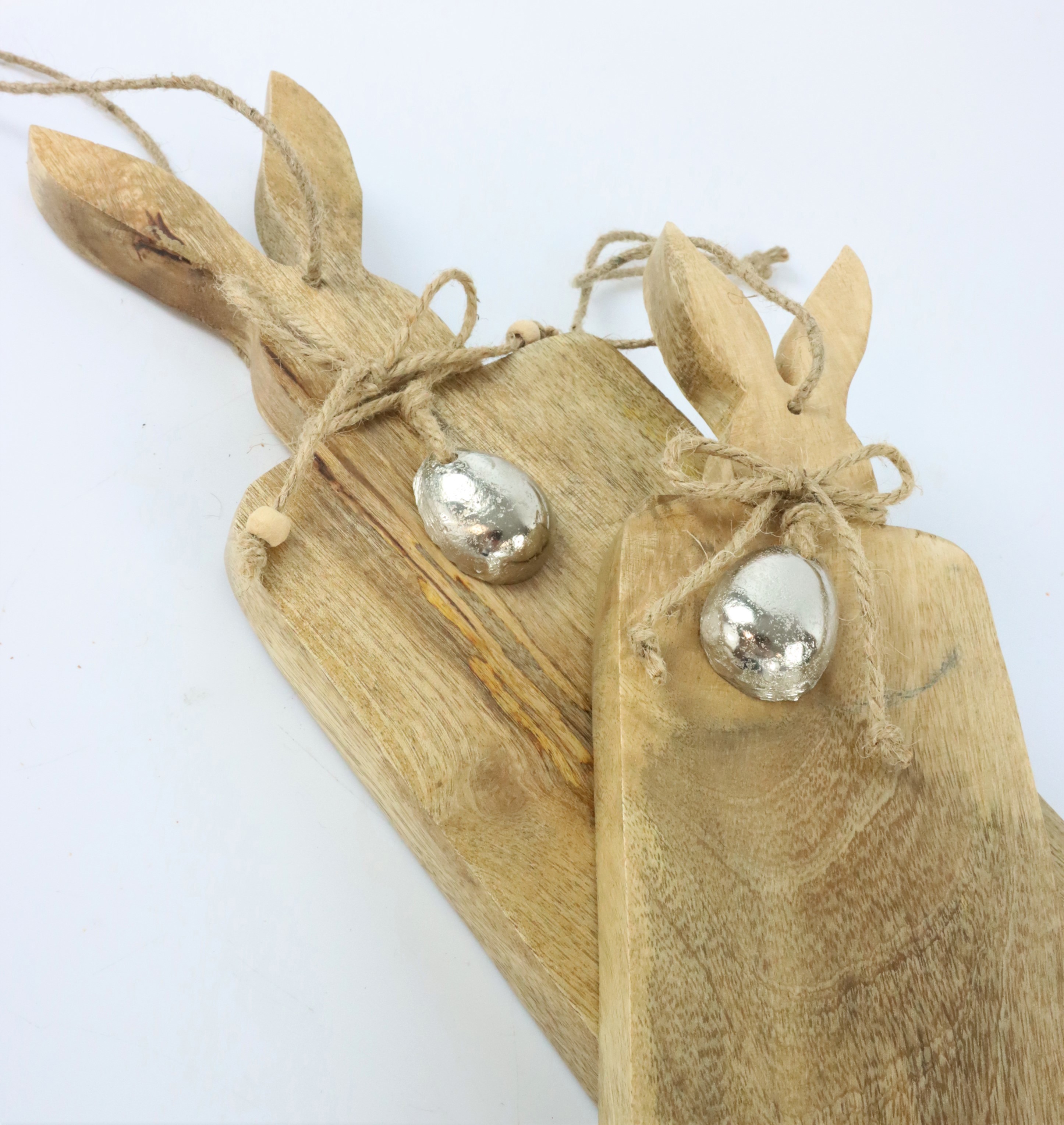 Bereichern Sie das Osterfest Ihrer Handelskunden mit einem besonderen Highlight aus unserem exklusiven B2B Online-Shop. Unser zweiteiliges Set Holzbretter "Hasenschmaus" ist speziell für den stationären Einzelhandel im Bereich Wohnen und Lifestyle konzipiert und besticht durch seine natürliche Eleganz und Funktionalität. Diese einzigartigen Holzbretter sind aus hochwertigem Mangoholz gefertigt und bringen einen Hauch von natürlicher Schönheit in jedes Zuhause.