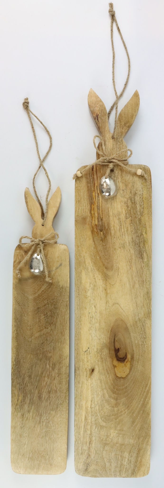 Mit den Maßen von ca. 68 cm und 50 cm bietet das "Hasenschmaus"-Set vielfältige Einsatzmöglichkeiten: Ob als charmante Dekoration auf dem Festtagstisch, als stilvolle Unterlage für Osterleckereien oder als dekorative Elemente in Schaufenstern, die Aufmerksamkeit der Passanten erregen – diese Holzbretter sind immer ein Blickfang. Das langlebige Mangoholz überzeugt mit seiner warmen Farbgebung und der individuellen Maserung, die jedes Brett zum Unikat macht.