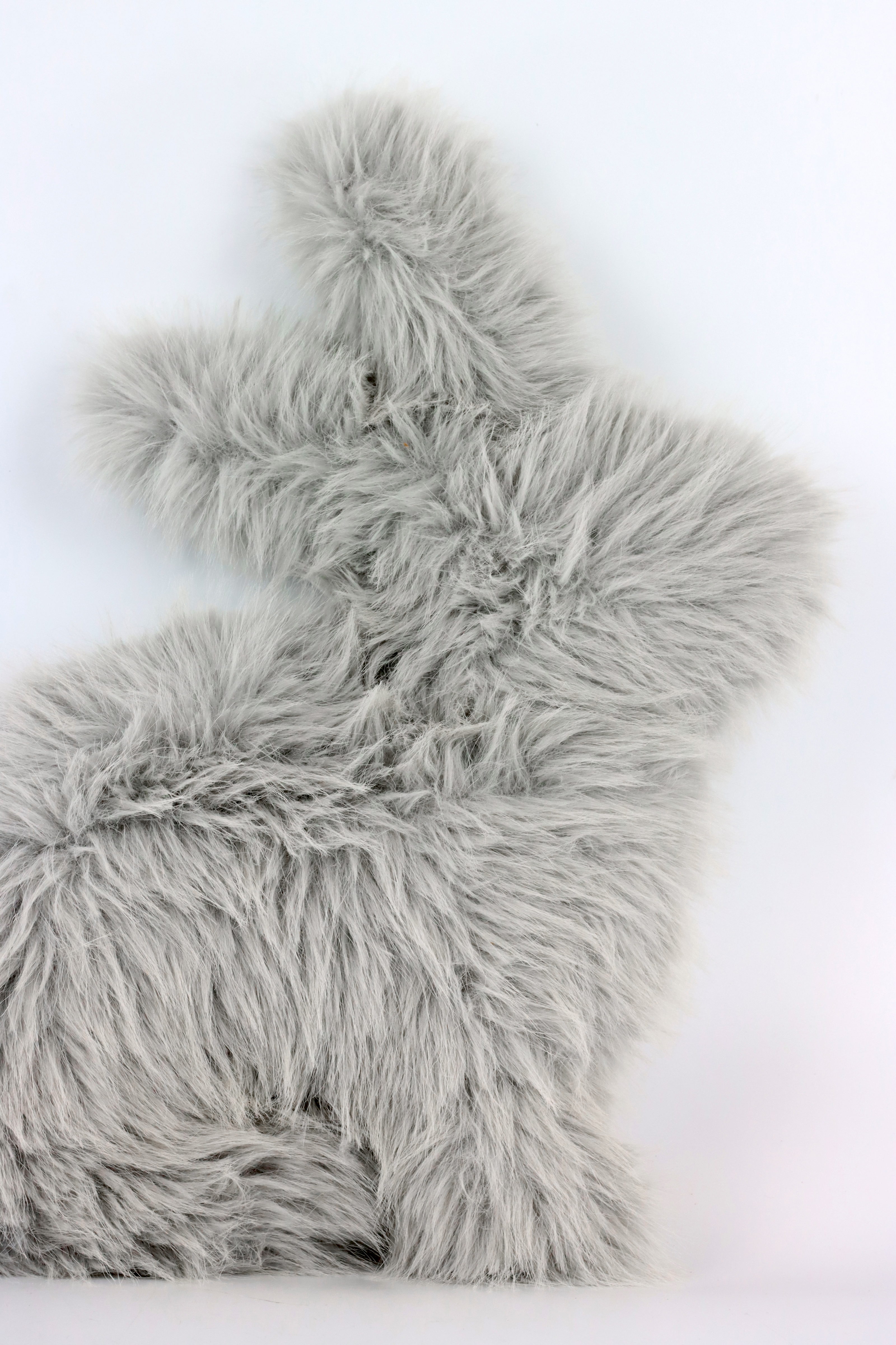 Das Hasenkissen "FURRY" beeindruckt mit einem eleganten Design aus grauem Fell, das vollständig aus hochwertigem Fakefur und Polyester gefertigt ist. Mit einer großzügigen Größe von etwa 45 cm bietet es sowohl Komfort als auch Dekorationswert. Das weiche Material macht es zu einem perfekten Begleiter für gemütliche Stunden auf der Couch, während seine bezaubernde Optik jeden Raum sofort aufwertet.