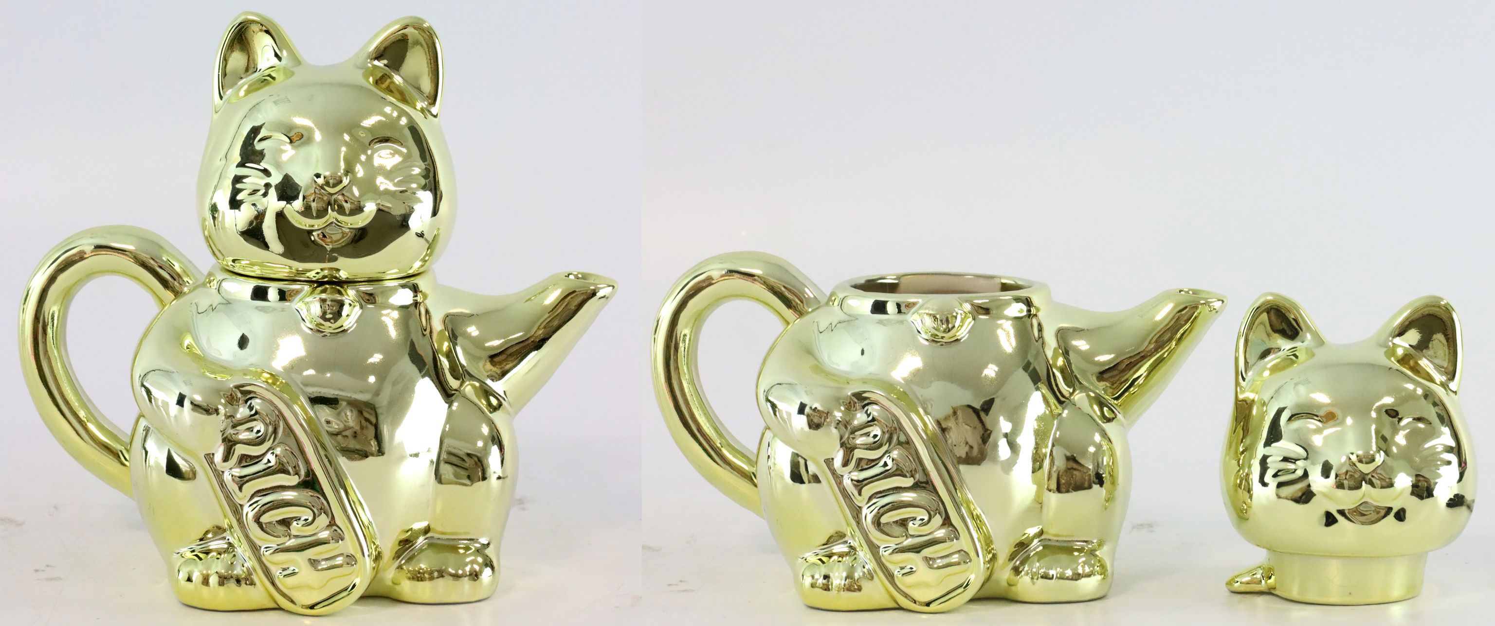 Immerse yourself in the world of stylish living with our exclusive "LUCKY CAT" jug - a unique masterpiece for stationary retail in the home and lifestyle sector. This artfully designed cat-shaped jug adds a touch of elegance and happiness to any room. The shiny gold finish makes it not only a functional kitchen accessory, but also an impressive decorative element that will catch the eye of your customers.